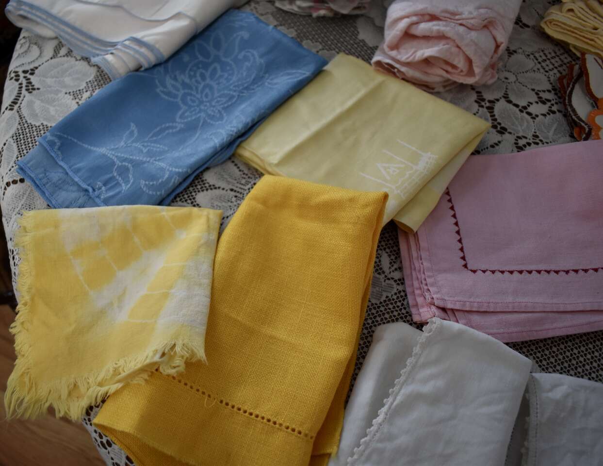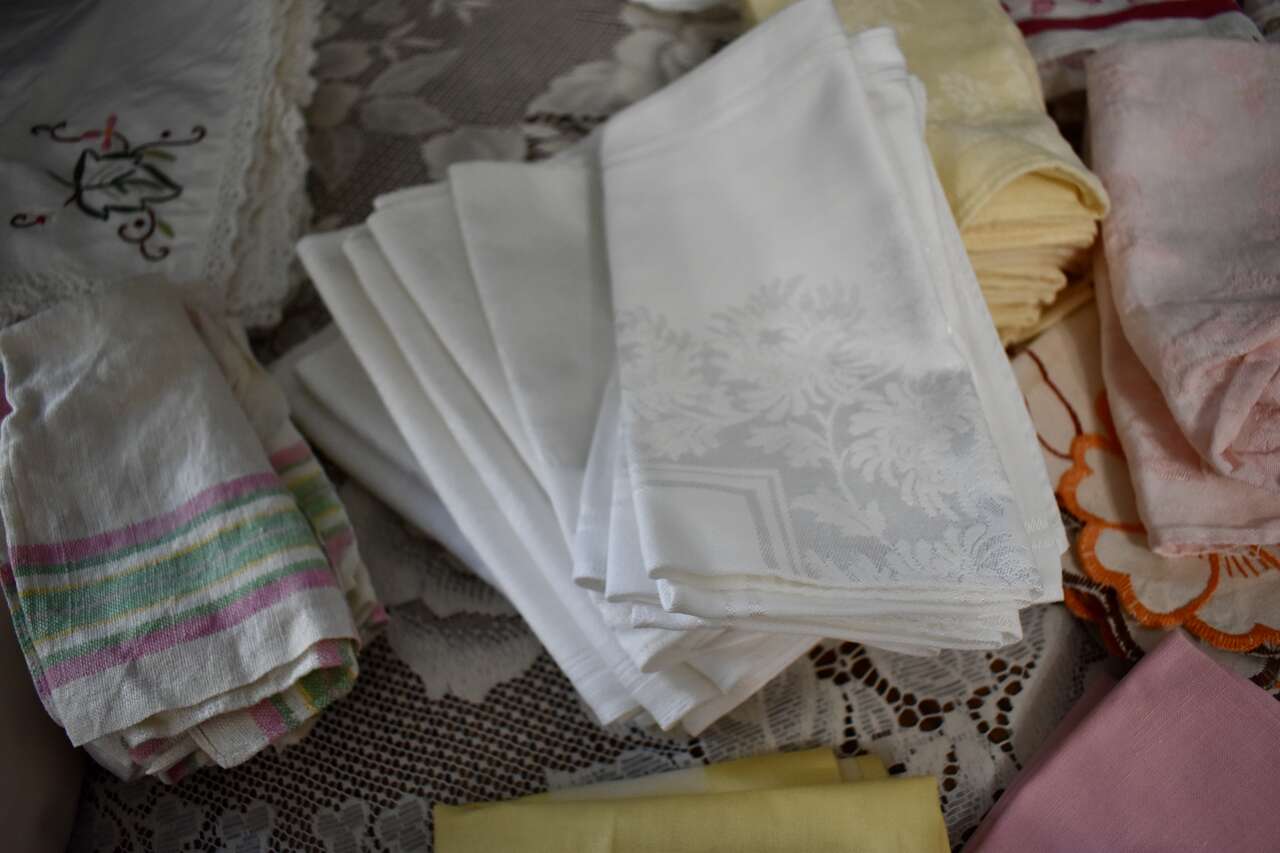 ***We will sell this at A Really Great Price of Only $1.00 For Each Cloth Napkin- Each One Sold Separately ( But Each One In Each Set Needs To Be Kept and Sold Together As A Set )— CASH & LOCAL PICK UP ONLY PLEASE- THANK YOU! ( So Depending on how many is in Each Set Combo- will be the final cost. )
