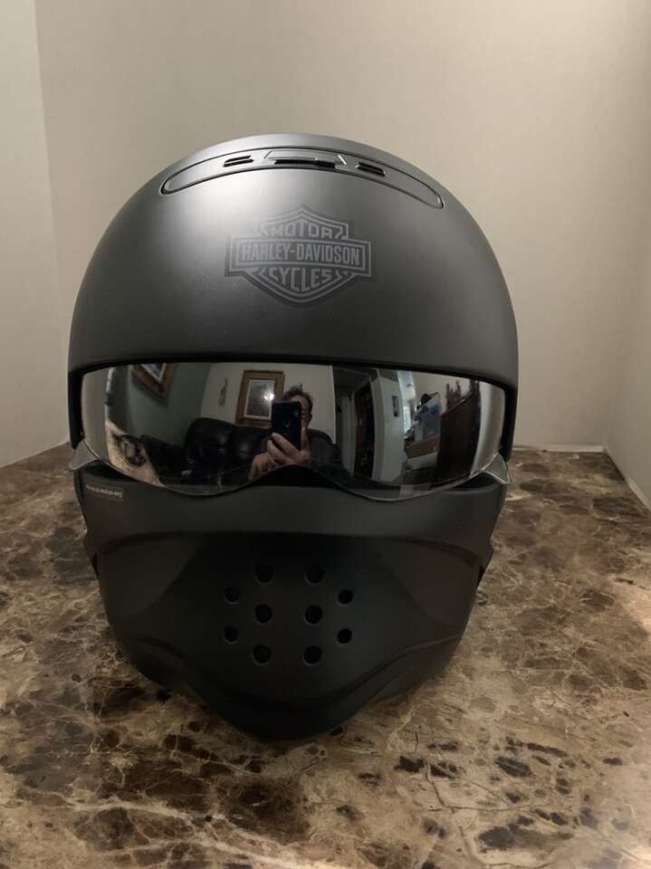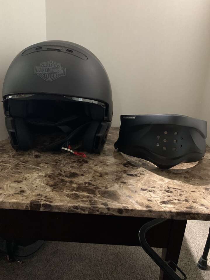 Two in one full helmet and half helmet. I wore it only one time. Also comes with the cover for the helmet 2 face shields clear, and dark also one sunglass and one clear extra large