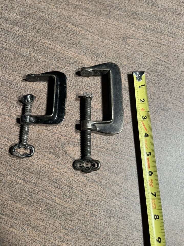 Vintage C Clamps….fun for office, shop, or man cave decor. Nice patina. $5 each