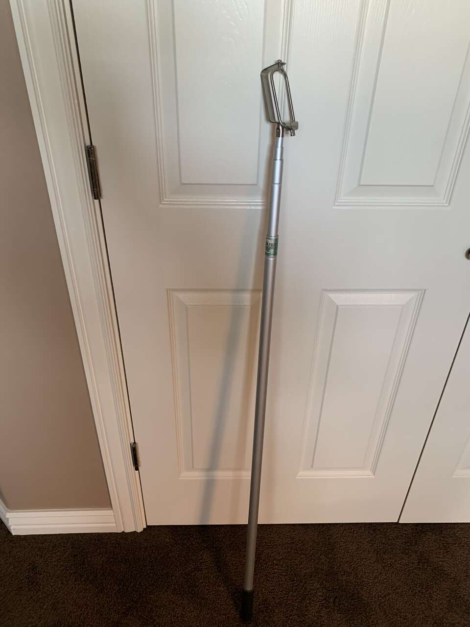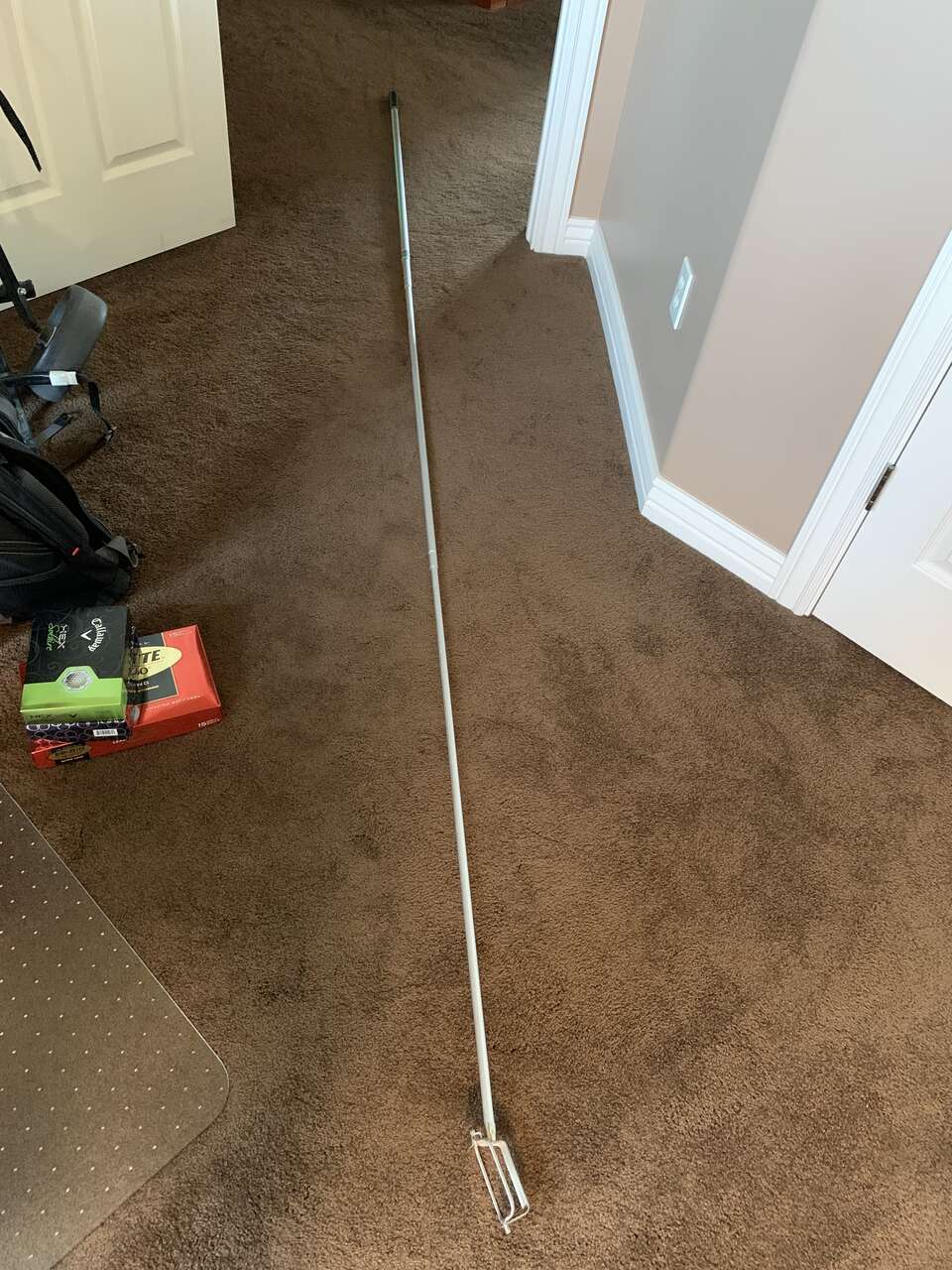 The Caddy Shaft is the brand and it is ~3' when not extended and can extend to 12'. I just do not use it enough to carry it around with me.
