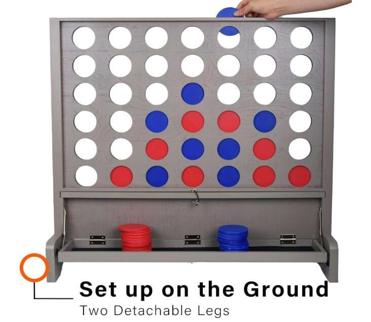 This is such a fun game. It's more fun in the giant size than the standard tabletop version. Great activity for birthday parties, neighborhood block parties, carnivals, fund raisers, game nights, holidays, family get togethers, church or school events. It's about 31 inches by 33 inches. Made of wood. Great price. Why buy it and have to store it? Renting makes sense.