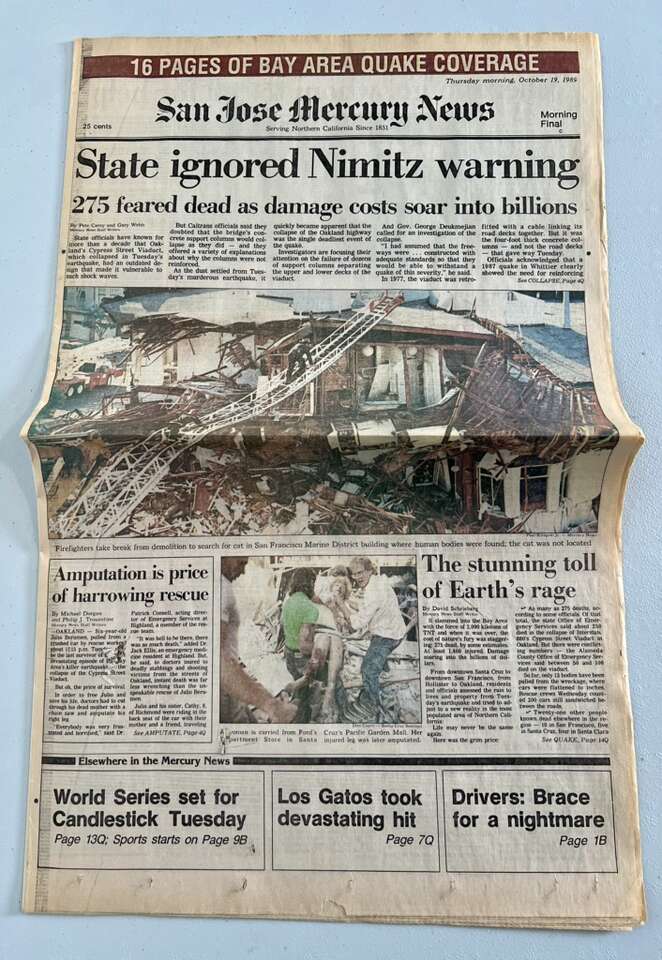 Collectible San Jose Mercury News Newspaper Massive Quake - October 18, 1989