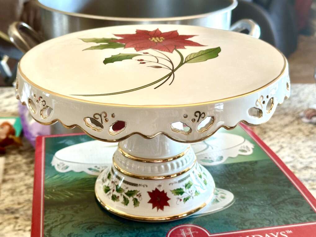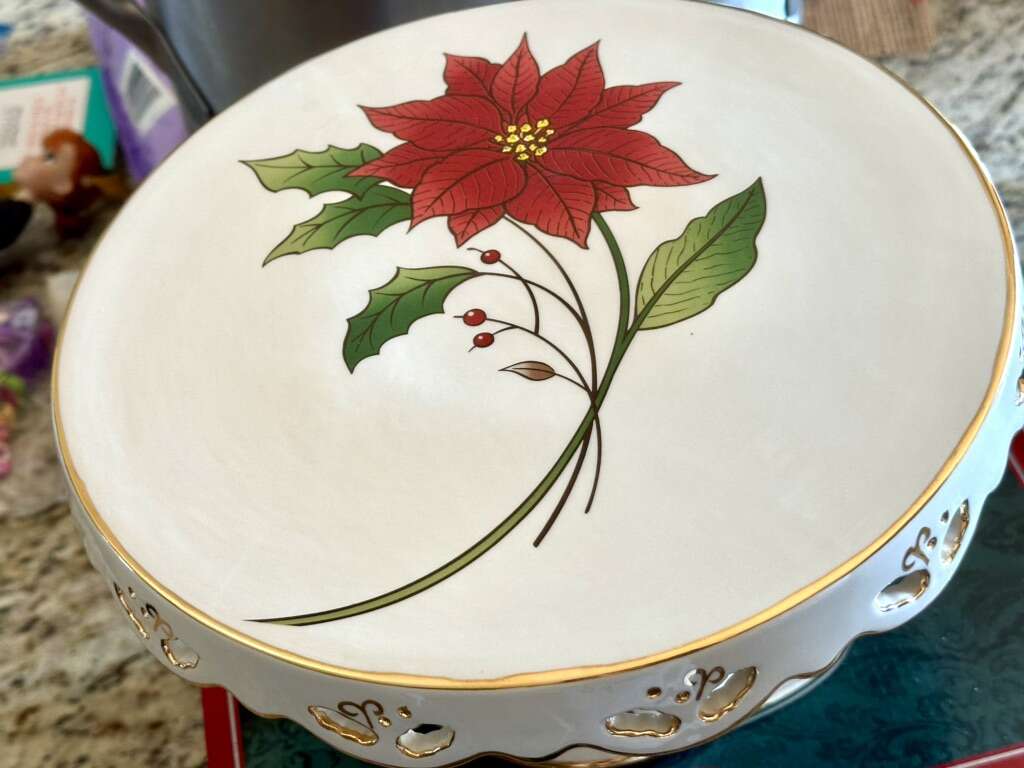 Beautiful poinsettia cake platter 10 inches wide. Never used. Perfect condition