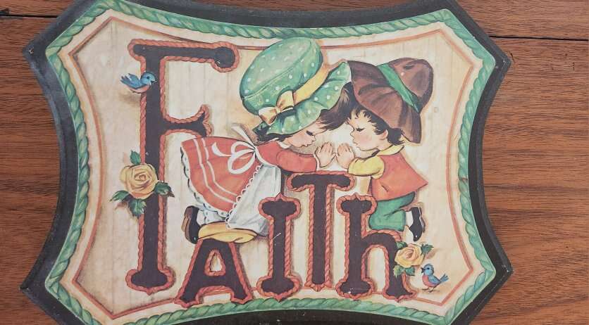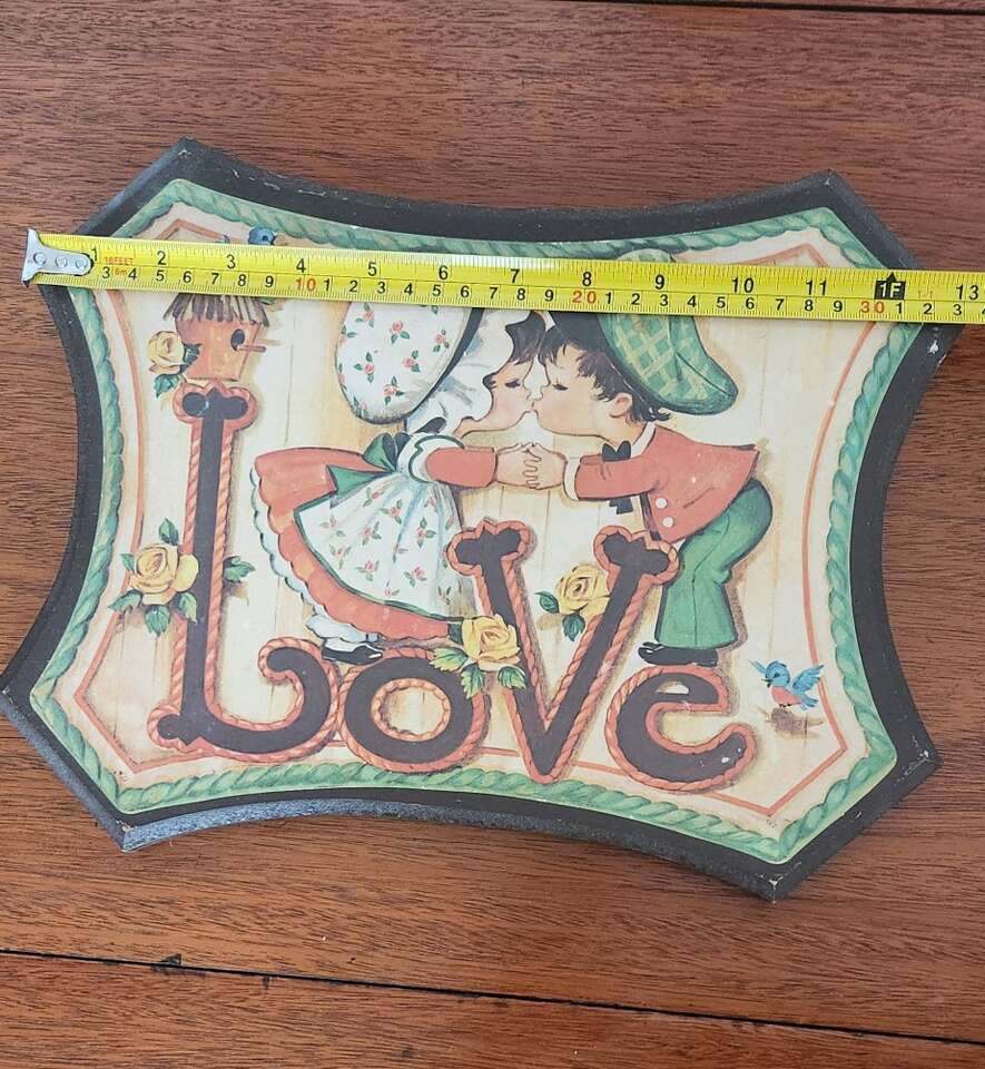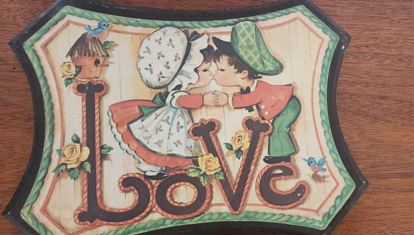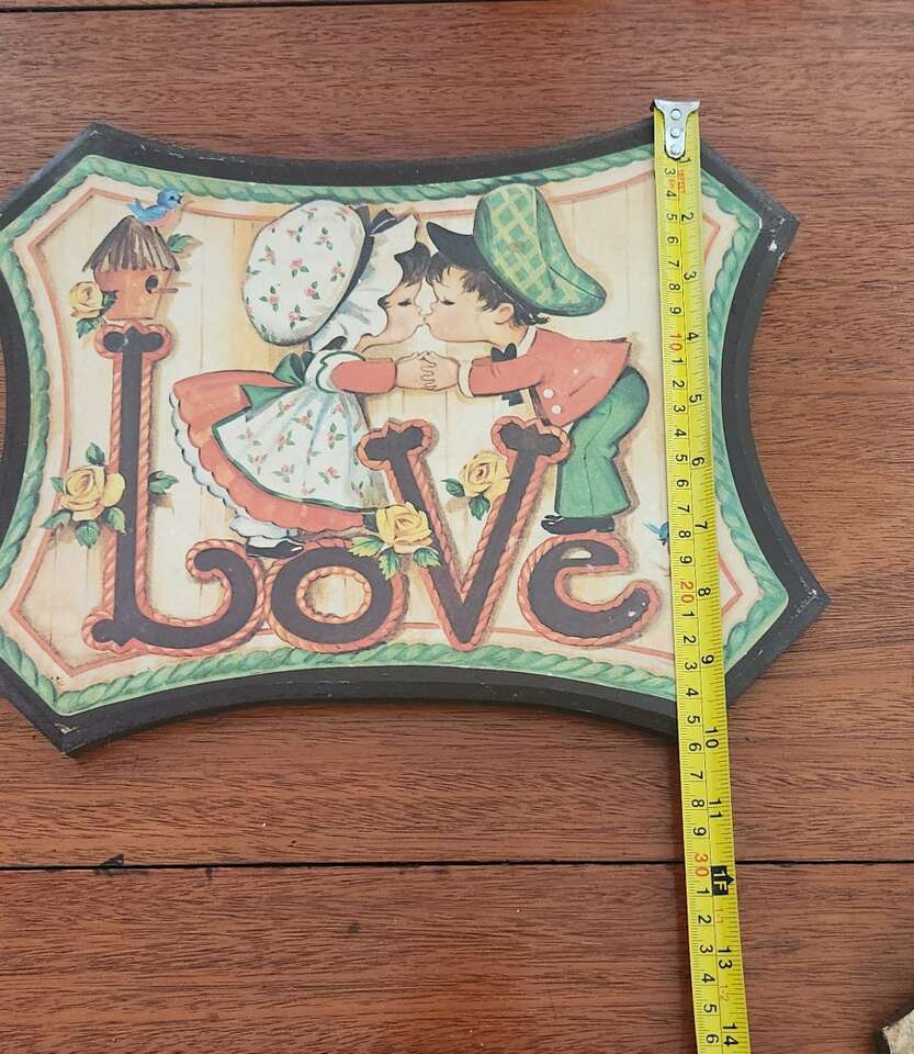 VenmoThis vintage plaque set from Homco is a beautiful addition to any room. The set includes two medium-sized wall pictures that feature the words Love and Faith with two young children. They come with wall hanging hardware and can be easily mounted on any wall.