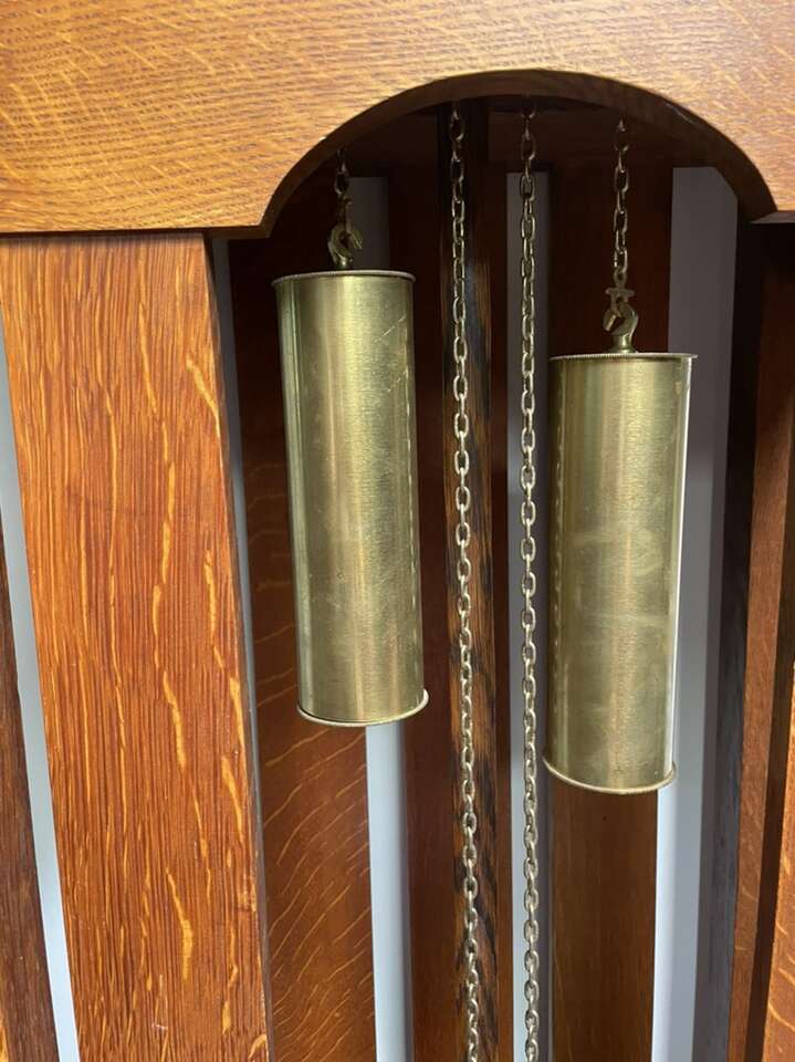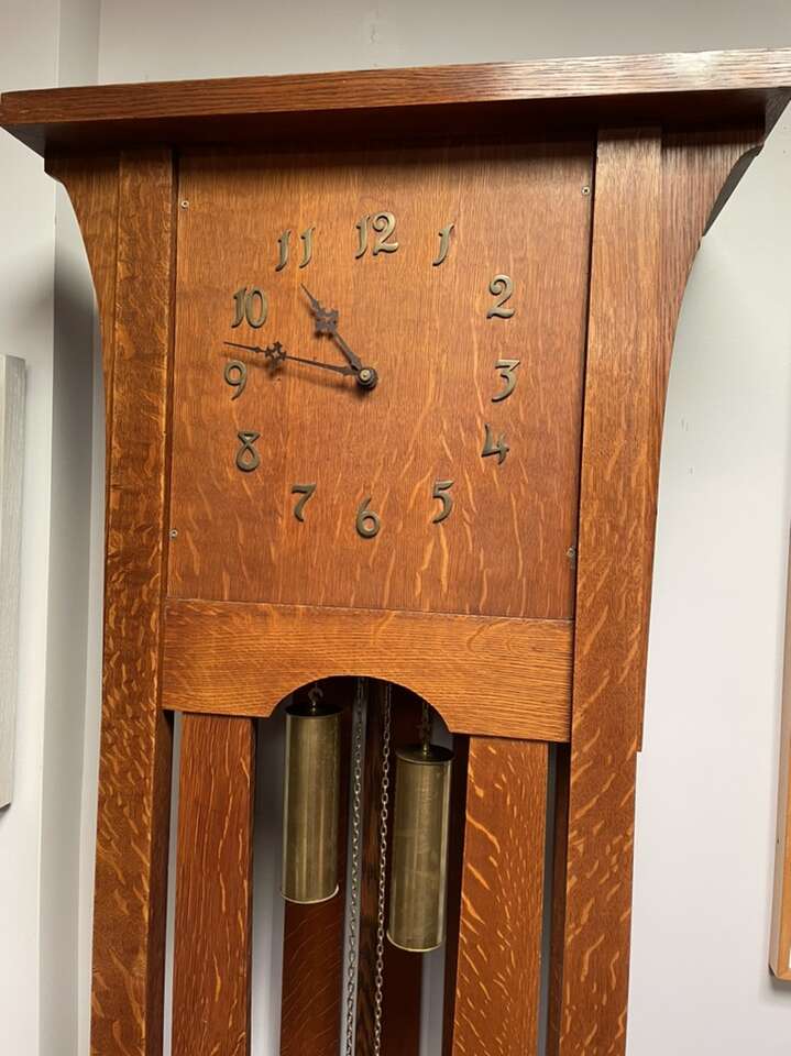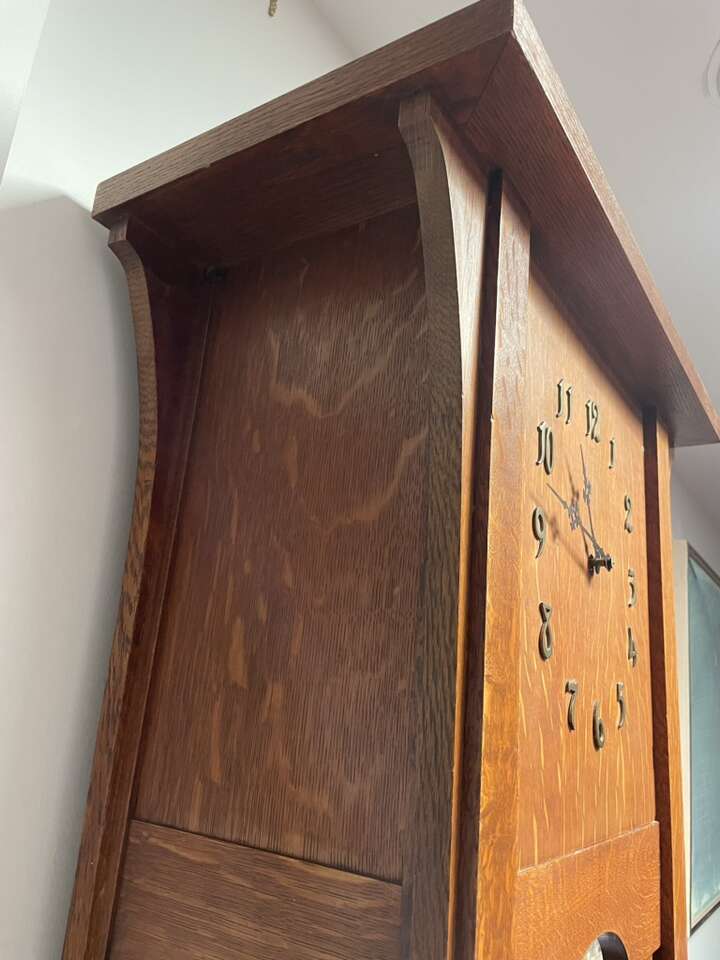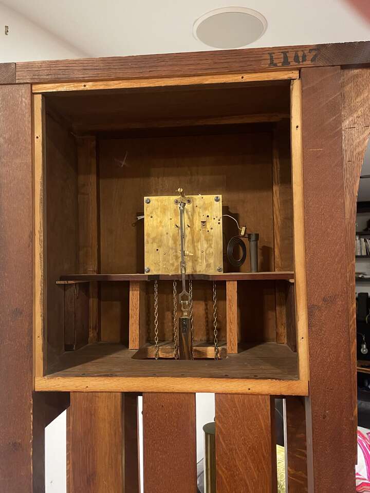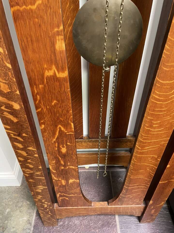 VenmoCraftsman Grandfather Clock ca. 1900-1910 Colonial Manufacturing Co, Zeeland, Michigan Clock Model #1107 Open case made of Quarter-sawn oak with beautiful ray flaking grain pattern
