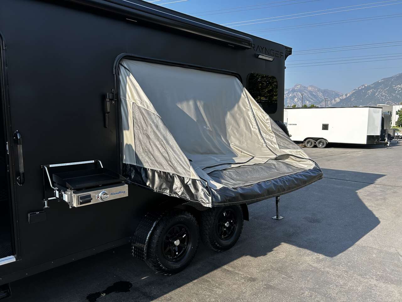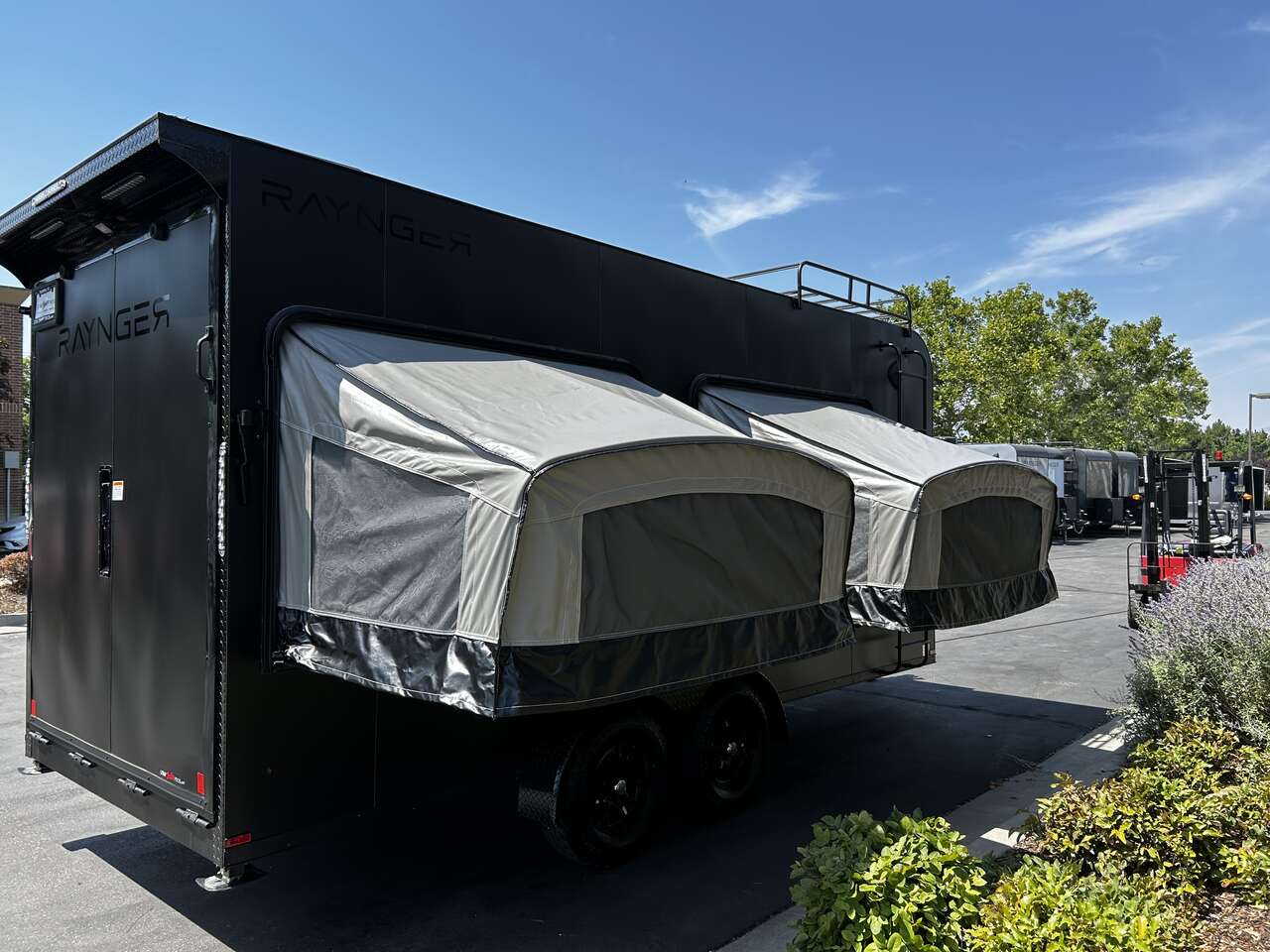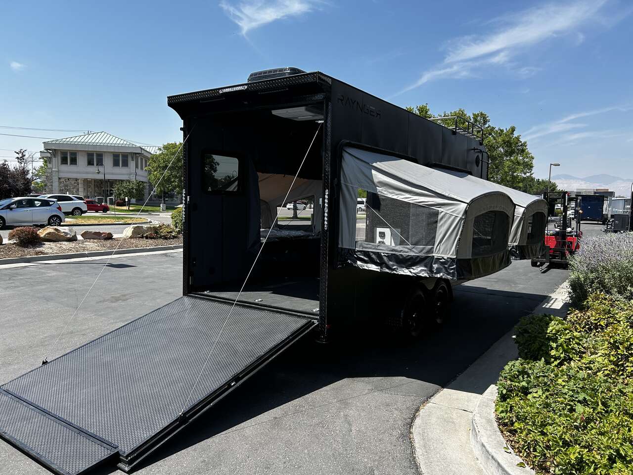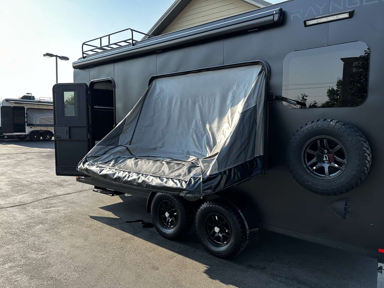 LIMITED TIME $286 A MONTH WITH ZERO DOWN WITH OUR SPECIAL LOCAL CREDIT UNION PARTNER!!! NO PRE-PAYMENT PENALTIES!!! WANT TO ADD A FULL BATH/HALF KITCHEN!!? REACH OUT TO OUR SALES STAFF FOR MORE INFORMATION, SEE PICTURES FOR AVAILABLE UPGRADE!!! NEW 2025 MODEL!!! WILL FIT ANY STOCK SIDE BY SIDE UTV!!! RAYNGER PREMIUM OFF ROAD TOY HAULER CAMPER!!! 18 INCH GROUND CLEARANCE!!! OFF ROAD TIRES!!! FULLY INSULATED!!! HEATING AND A/C!!! WET SOUND STEREO!!! TWO FOLD OUT/POP OUT TENTS WITH MATTRESS!!! CARGO BASKET!!! LED LIT AWNING!!! 84 Inch Rear Entry Height/87 INCH INTERIOR HEIGHT!!! 77 Inch Rear Entry Width!!! Aluminum Ventilated Locking Generator Box!!! UPGRADED TORSION AXLES!!! And Much MUCH MORE!!! Check out our Specs!!! Also available in 18 foot models. 18 Foot Models can have 3 Fold Out Beds/Pop Out Tents. 16 Foot and 18 Foot Models will fit ANY stock 4 Seater Side by Side • 6” I Beam Frame• Flat Top Design• Flat Front Design• Wall Posts 16” on Center• Cross Members 16” on Center• Roof Bows 16” on Center• Rust Inhibiting Z-Tech Protection on Chassis• Ameraguard on Tongue• Ameraguard on Rear Bumper• Ameraguard Around All Door Openings and Stepwell• Ameraguard Around Edges of Ramp Door• 3500 LB Spring Axles• 2-5/16” Coupler• One-Piece Aluminum Roof• ST235/75R15 Aluminum Wheels with Chrome Center Caps• 2000# Ramp Door with Eberhard Latch• 30” Tempered Glass RV Door with Screen Door• .030 Exterior Metal with Screwless Sides• 24” Black Stoneguard• 3” Black Bottom Trim• Sand Pad• Black Door Hold• 2.7mm Charcoal Textured Vinyl Ceiling • 9mm Charcoal Textured Vinyl Walls• 3/4” Engineered Wood Floor with Rubber Coin Overlay• (6) 1200 LB Floor D rings Installed with Backer Plates• LED Clearance Lights and Tail Lights• LED Back-up Lights• No Show Wheel Box• Spoiler with Toggle Switch• RV Step• 7’ Interior• (2) 17” Chrome Base Lights with Switch• (1) Black 17” Spot Light with Switch• (1) 30 Amp Panel with Marine Plug• A/C Unit with Heat Strip• (3) Interior Recepts• (1) Exterior Recept• 12V Battery and Charge Line• Prep for Backup Camera• Wet Sounds System• (3) Blue Interior Cabinet Lights• (1) 6’ Section of Flex Lights• Black ATP Rear Header and Hoop• Black ATP Fenders• Insulated Walls & Ceiling• Base Cabinets• Overhead Cabinets with Netting Over Compartments• Pop Out Tent• Black ATP Storage/Generator Box Mounted On Tongue SW092586