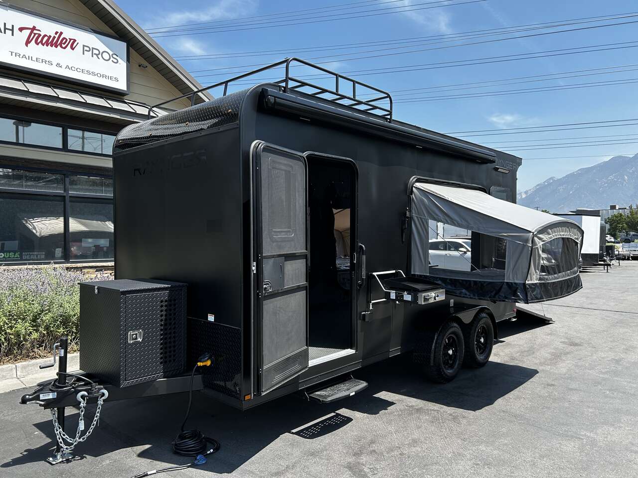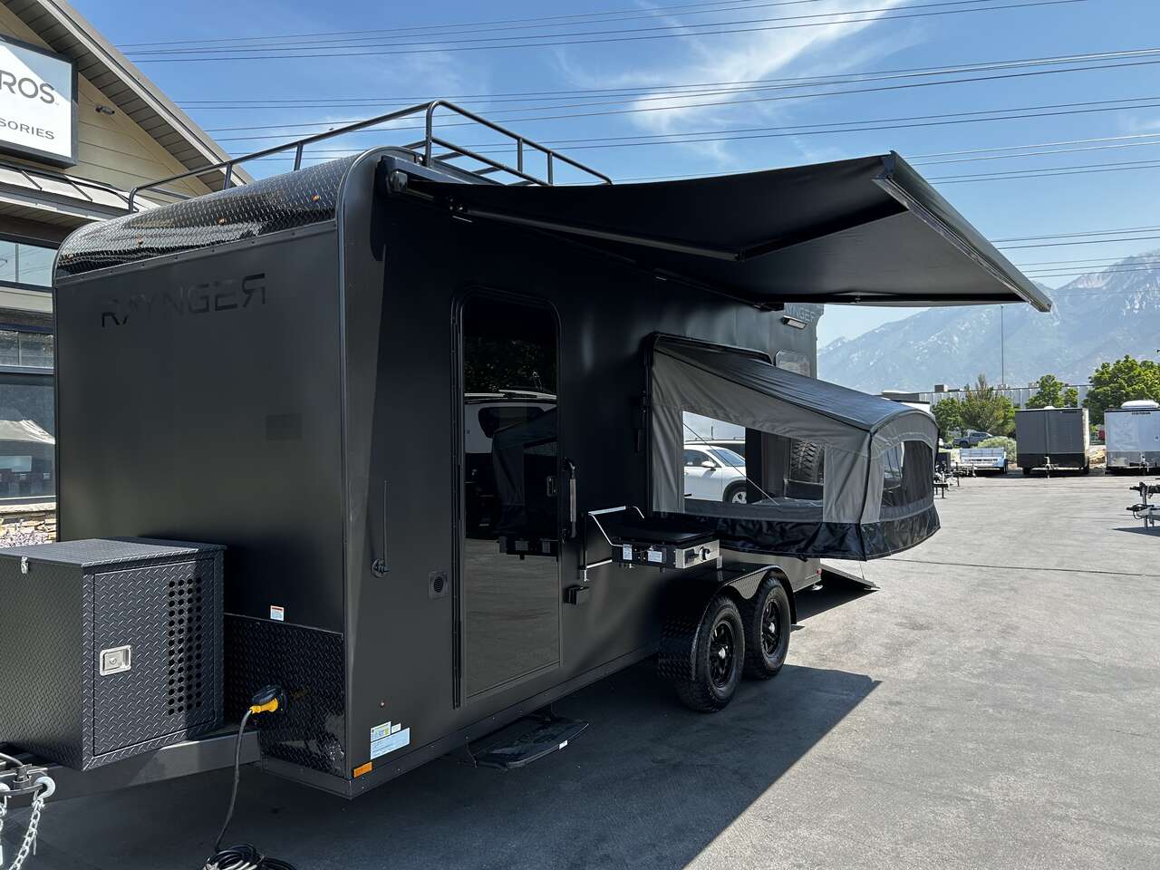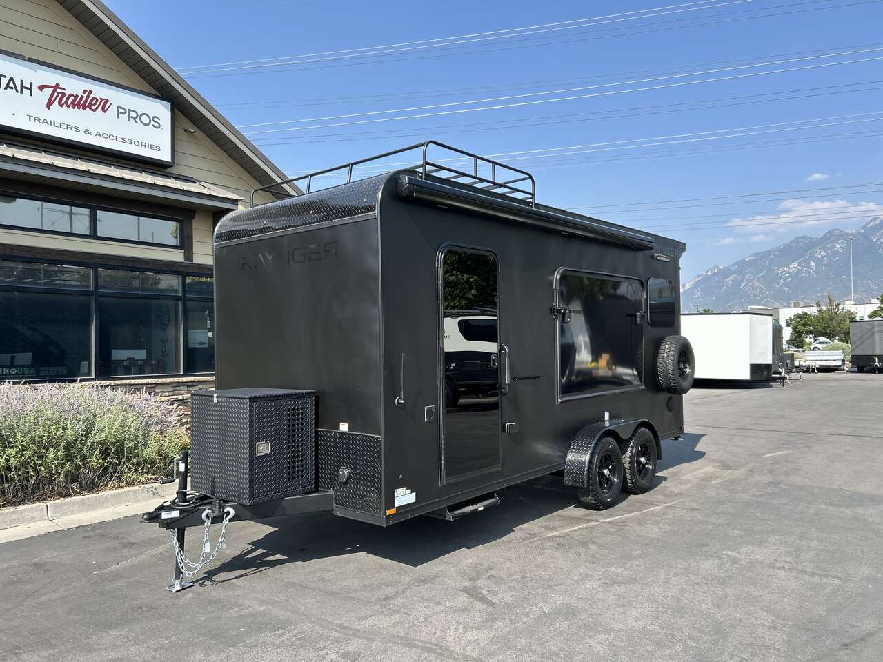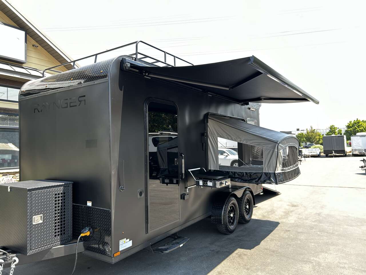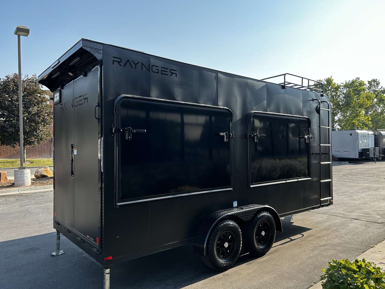 LIMITED TIME $286 A MONTH WITH ZERO DOWN WITH OUR SPECIAL LOCAL CREDIT UNION PARTNER!!! NO PRE-PAYMENT PENALTIES!!! WANT TO ADD A FULL BATH/HALF KITCHEN!!? REACH OUT TO OUR SALES STAFF FOR MORE INFORMATION, SEE PICTURES FOR AVAILABLE UPGRADE!!! NEW 2025 MODEL!!! WILL FIT ANY STOCK SIDE BY SIDE UTV!!! RAYNGER PREMIUM OFF ROAD TOY HAULER CAMPER!!! 18 INCH GROUND CLEARANCE!!! OFF ROAD TIRES!!! FULLY INSULATED!!! HEATING AND A/C!!! WET SOUND STEREO!!! TWO FOLD OUT/POP OUT TENTS WITH MATTRESS!!! CARGO BASKET!!! LED LIT AWNING!!! 84 Inch Rear Entry Height/87 INCH INTERIOR HEIGHT!!! 77 Inch Rear Entry Width!!! Aluminum Ventilated Locking Generator Box!!! UPGRADED TORSION AXLES!!! And Much MUCH MORE!!! Check out our Specs!!! Also available in 18 foot models. 18 Foot Models can have 3 Fold Out Beds/Pop Out Tents. 16 Foot and 18 Foot Models will fit ANY stock 4 Seater Side by Side • 6” I Beam Frame• Flat Top Design• Flat Front Design• Wall Posts 16” on Center• Cross Members 16” on Center• Roof Bows 16” on Center• Rust Inhibiting Z-Tech Protection on Chassis• Ameraguard on Tongue• Ameraguard on Rear Bumper• Ameraguard Around All Door Openings and Stepwell• Ameraguard Around Edges of Ramp Door• 3500 LB Spring Axles• 2-5/16” Coupler• One-Piece Aluminum Roof• ST235/75R15 Aluminum Wheels with Chrome Center Caps• 2000# Ramp Door with Eberhard Latch• 30” Tempered Glass RV Door with Screen Door• .030 Exterior Metal with Screwless Sides• 24” Black Stoneguard• 3” Black Bottom Trim• Sand Pad• Black Door Hold• 2.7mm Charcoal Textured Vinyl Ceiling • 9mm Charcoal Textured Vinyl Walls• 3/4” Engineered Wood Floor with Rubber Coin Overlay• (6) 1200 LB Floor D rings Installed with Backer Plates• LED Clearance Lights and Tail Lights• LED Back-up Lights• No Show Wheel Box• Spoiler with Toggle Switch• RV Step• 7’ Interior• (2) 17” Chrome Base Lights with Switch• (1) Black 17” Spot Light with Switch• (1) 30 Amp Panel with Marine Plug• A/C Unit with Heat Strip• (3) Interior Recepts• (1) Exterior Recept• 12V Battery and Charge Line• Prep for Backup Camera• Wet Sounds System• (3) Blue Interior Cabinet Lights• (1) 6’ Section of Flex Lights• Black ATP Rear Header and Hoop• Black ATP Fenders• Insulated Walls & Ceiling• Base Cabinets• Overhead Cabinets with Netting Over Compartments• Pop Out Tent• Black ATP Storage/Generator Box Mounted On Tongue SW092586