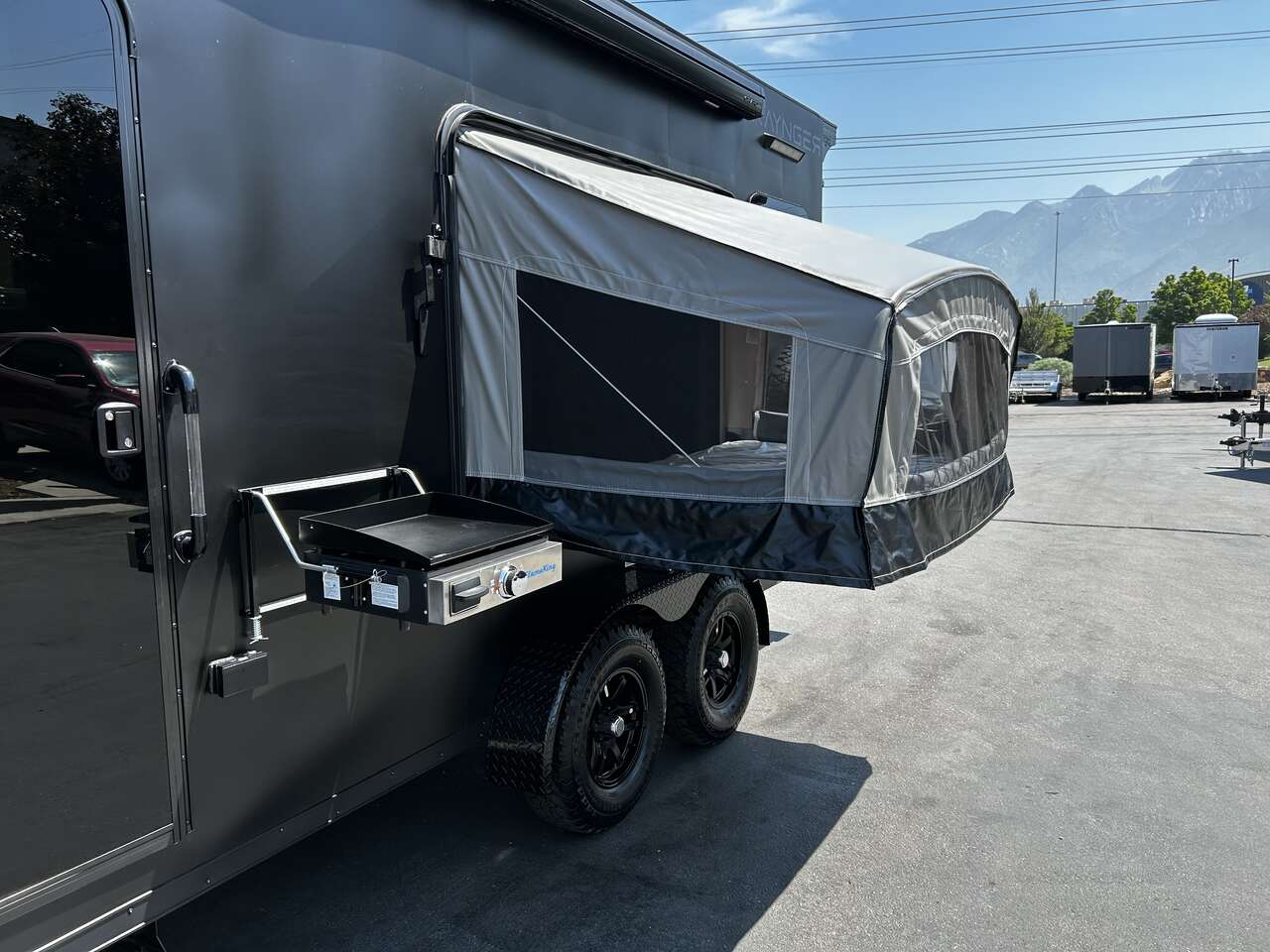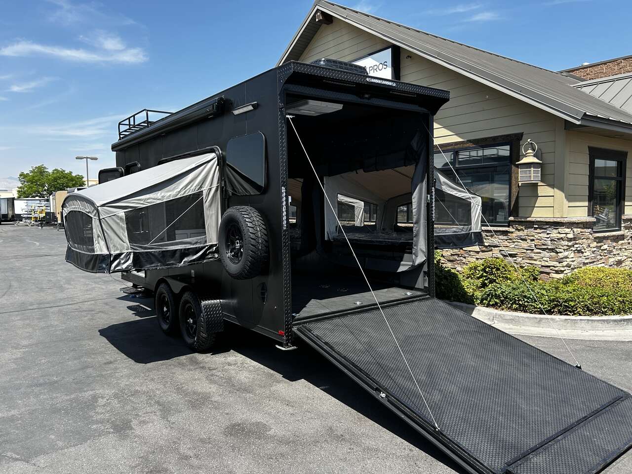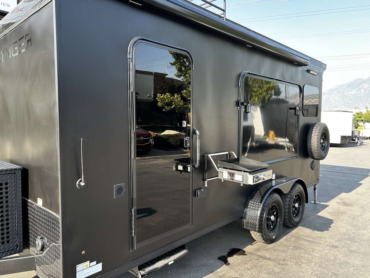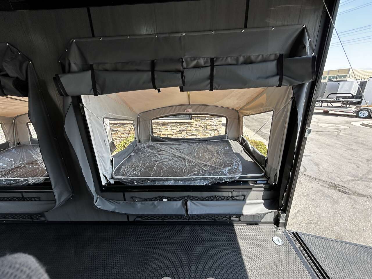 LIMITED TIME $286 A MONTH WITH ZERO DOWN WITH OUR SPECIAL LOCAL CREDIT UNION PARTNER!!! NO PRE-PAYMENT PENALTIES!!! WANT TO ADD A FULL BATH/HALF KITCHEN!!? REACH OUT TO OUR SALES STAFF FOR MORE INFORMATION, SEE PICTURES FOR AVAILABLE UPGRADE!!! NEW 2025 MODEL!!! WILL FIT ANY STOCK SIDE BY SIDE UTV!!! RAYNGER PREMIUM OFF ROAD TOY HAULER CAMPER!!! 18 INCH GROUND CLEARANCE!!! OFF ROAD TIRES!!! FULLY INSULATED!!! HEATING AND A/C!!! WET SOUND STEREO!!! TWO FOLD OUT/POP OUT TENTS WITH MATTRESS!!! CARGO BASKET!!! LED LIT AWNING!!! 84 Inch Rear Entry Height/87 INCH INTERIOR HEIGHT!!! 77 Inch Rear Entry Width!!! Aluminum Ventilated Locking Generator Box!!! UPGRADED TORSION AXLES!!! And Much MUCH MORE!!! Check out our Specs!!! Also available in 18 foot models. 18 Foot Models can have 3 Fold Out Beds/Pop Out Tents. 16 Foot and 18 Foot Models will fit ANY stock 4 Seater Side by Side • 6” I Beam Frame• Flat Top Design• Flat Front Design• Wall Posts 16” on Center• Cross Members 16” on Center• Roof Bows 16” on Center• Rust Inhibiting Z-Tech Protection on Chassis• Ameraguard on Tongue• Ameraguard on Rear Bumper• Ameraguard Around All Door Openings and Stepwell• Ameraguard Around Edges of Ramp Door• 3500 LB Spring Axles• 2-5/16” Coupler• One-Piece Aluminum Roof• ST235/75R15 Aluminum Wheels with Chrome Center Caps• 2000# Ramp Door with Eberhard Latch• 30” Tempered Glass RV Door with Screen Door• .030 Exterior Metal with Screwless Sides• 24” Black Stoneguard• 3” Black Bottom Trim• Sand Pad• Black Door Hold• 2.7mm Charcoal Textured Vinyl Ceiling • 9mm Charcoal Textured Vinyl Walls• 3/4” Engineered Wood Floor with Rubber Coin Overlay• (6) 1200 LB Floor D rings Installed with Backer Plates• LED Clearance Lights and Tail Lights• LED Back-up Lights• No Show Wheel Box• Spoiler with Toggle Switch• RV Step• 7’ Interior• (2) 17” Chrome Base Lights with Switch• (1) Black 17” Spot Light with Switch• (1) 30 Amp Panel with Marine Plug• A/C Unit with Heat Strip• (3) Interior Recepts• (1) Exterior Recept• 12V Battery and Charge Line• Prep for Backup Camera• Wet Sounds System• (3) Blue Interior Cabinet Lights• (1) 6’ Section of Flex Lights• Black ATP Rear Header and Hoop• Black ATP Fenders• Insulated Walls & Ceiling• Base Cabinets• Overhead Cabinets with Netting Over Compartments• Pop Out Tent• Black ATP Storage/Generator Box Mounted On Tongue SW092586
