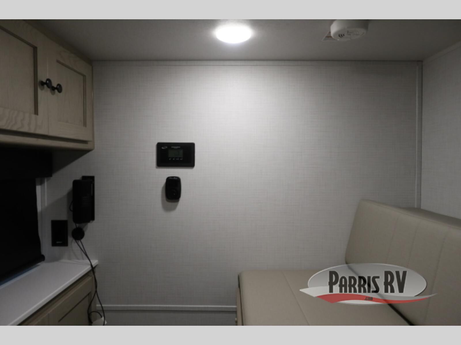 This is the perfect trailer to take on weekend trips to the lake! You'll enjoy a gaucho bed that can convert to your sleeping space at night, and there is a wardrobe to keep your clothes tidy. There is also a shelf here for more storage space! The outside kitchen includes a 12V refrigerator and a convection microwave, plus a griddle to cook meals on.