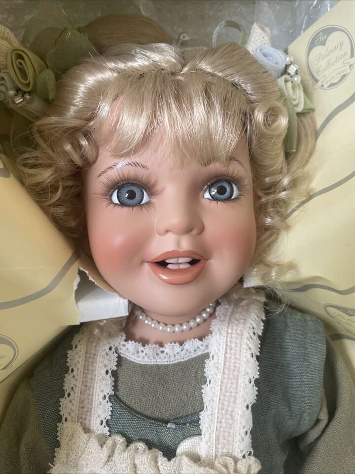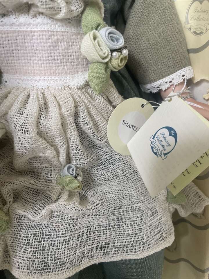 This beautiful Palmary Collection Three Heart Doll porcelain doll, titled Shanelle, is a charming addition to any doll collection. The doll stands at 21 inches tall and features a Caucasian ethnicity with a girl doll gender. This vintage doll was manufactured in the year 2000 and comes with a set that includes the doll itself. The doll is made of high-quality porcelain material and is perfect for collectors or doll enthusiasts alike. The doll's features include a vintage design, and it is not considered vintage. This doll is an excellent choice for anyone looking to add a special touch to their doll collection.