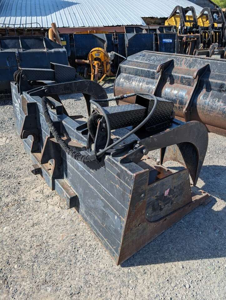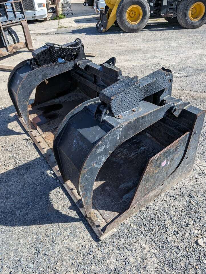This bucket is in good shape. It's wide frame makes for a very large grabbing capacity. These are excellent for demolition, hay cleanup trees shrubs scrap metal and much more. We have a few of these for our skid steers and loaders and they work amazing. Feel free to call or text with questions. Thanks