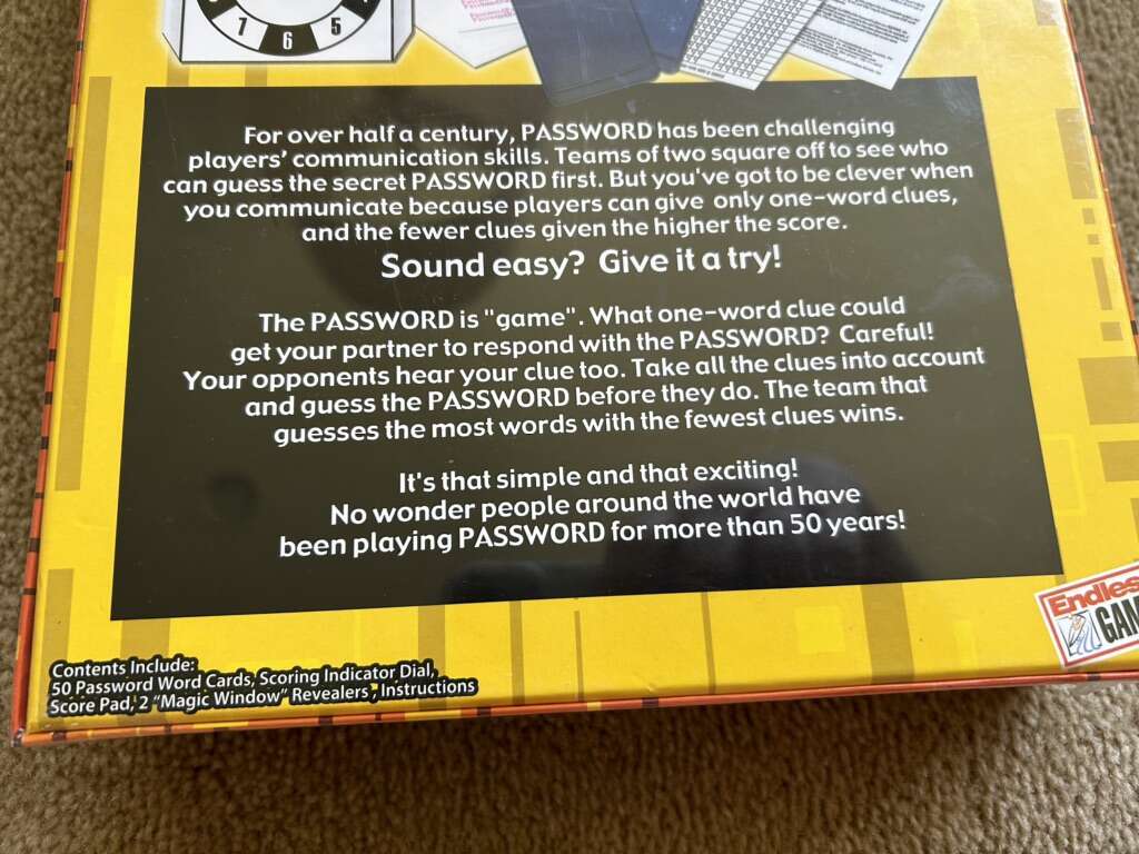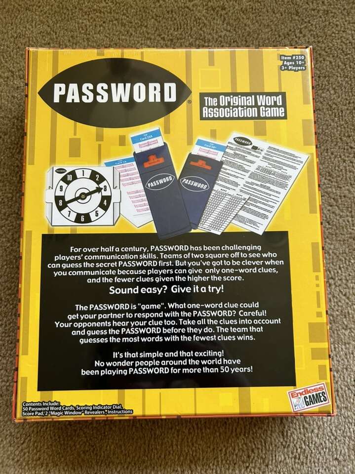 NEW (sealed in plastic) Password Game: The Original Word Association Game. Ages 10+, 3+ players. By Endless Games, 2019. New, unopened condition. Text only. Cash or Venmo.