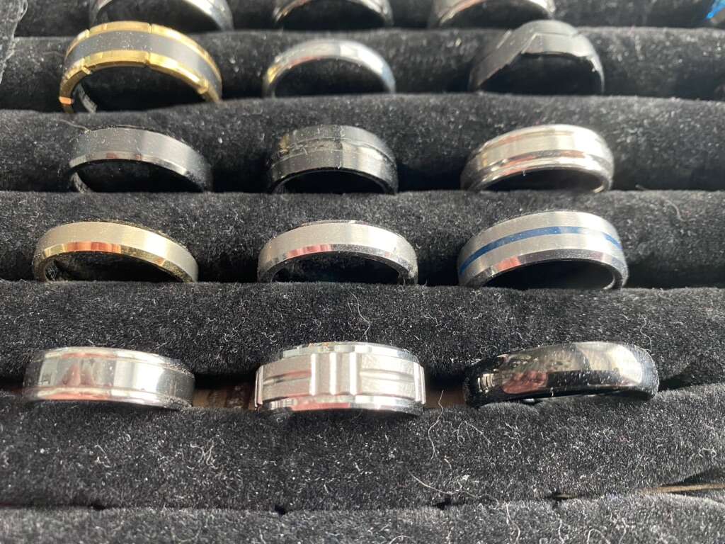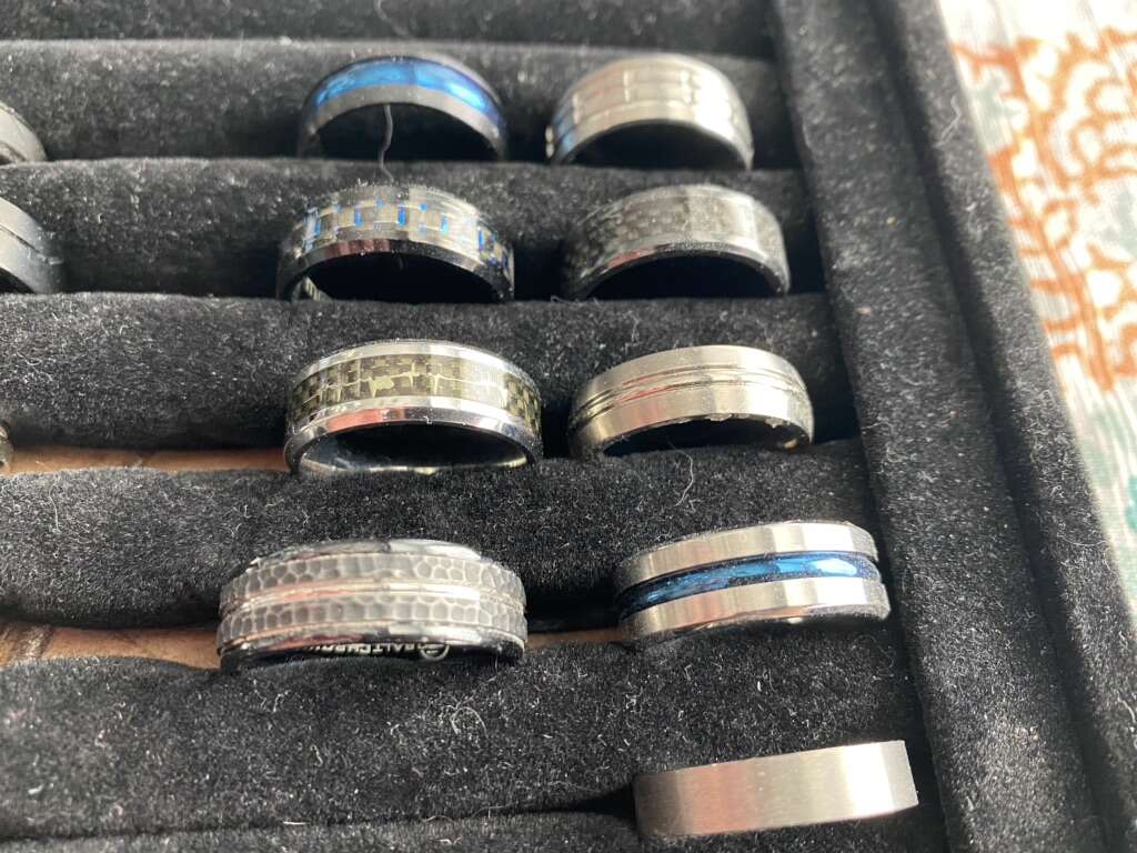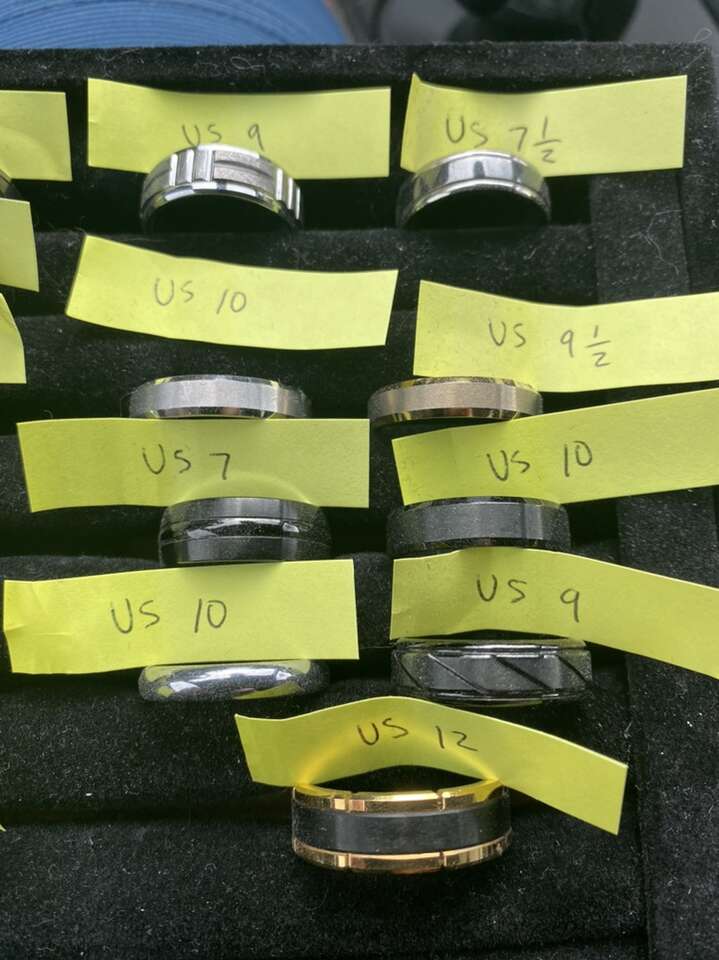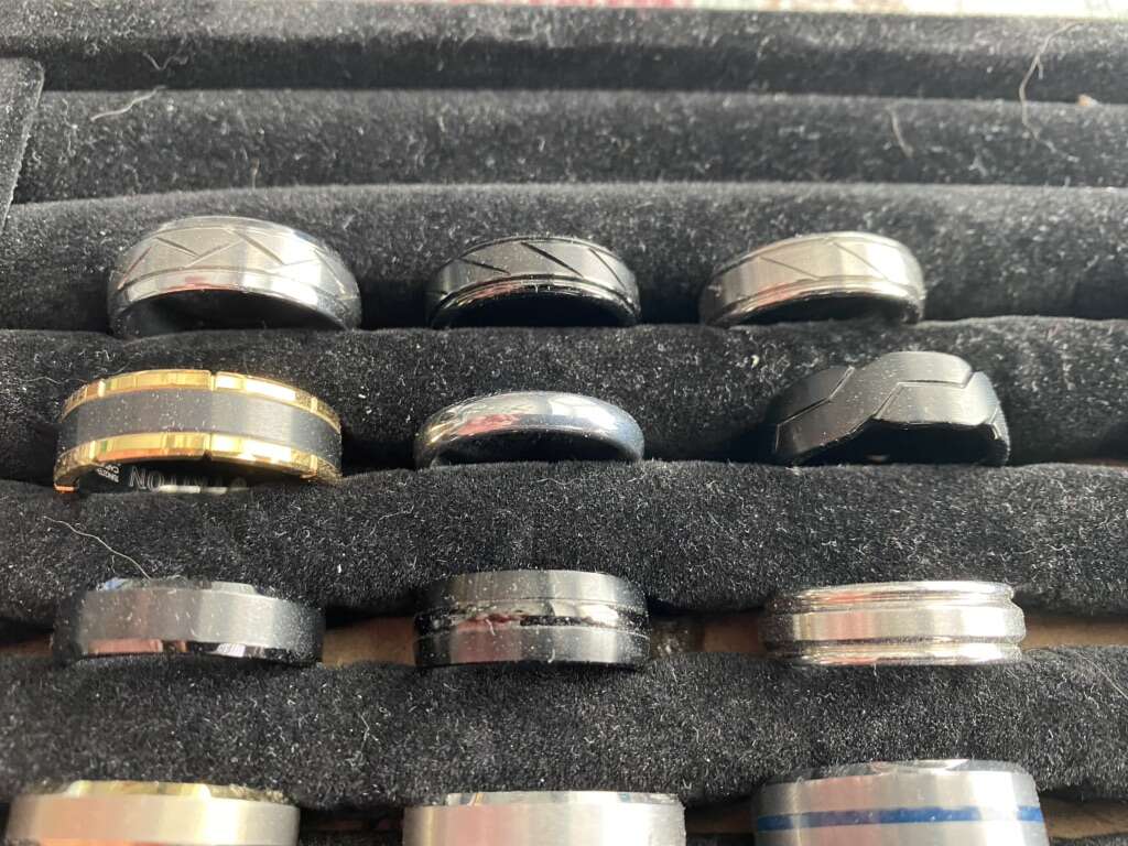 New Triton Fredrick Goldman tungsten rings. 24 rings total, 15 are Triton/Fredrick Goldman rings, the other 9 are other brands, but still nice! See pics for the sizing, some of the Triton rings retail for $300-500 each, asking $225 for all of them together, An awesome deal! Txt Scott at 603-558-5759, best to come look at them in person, cash preferred.
