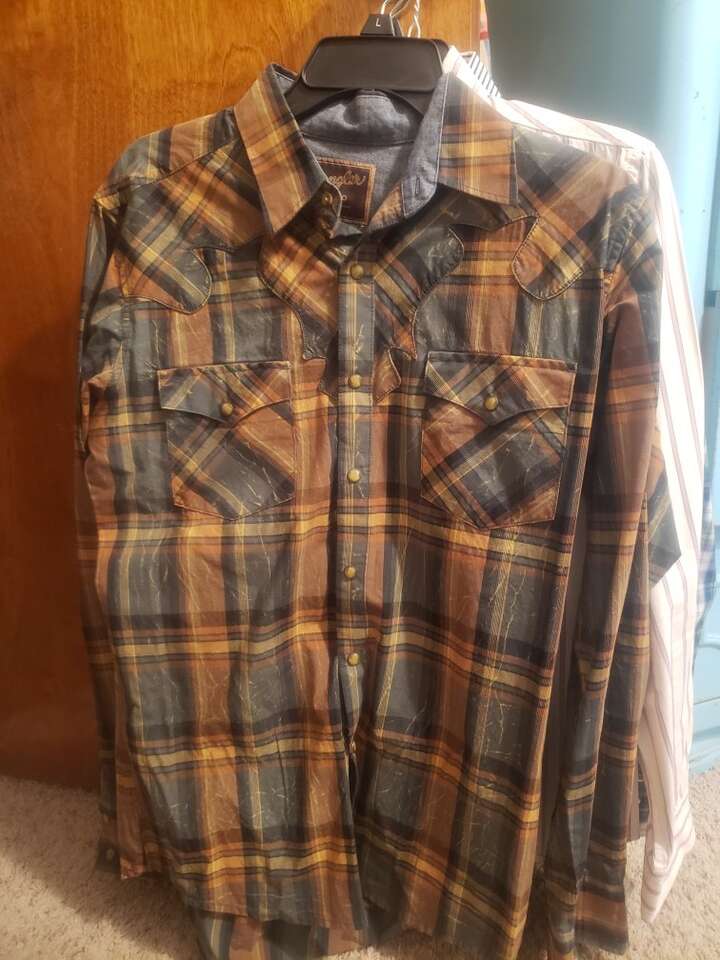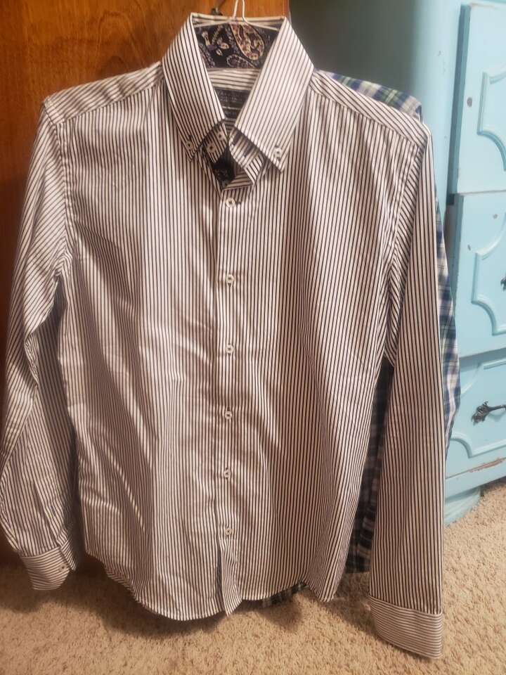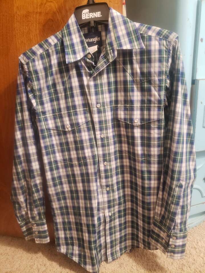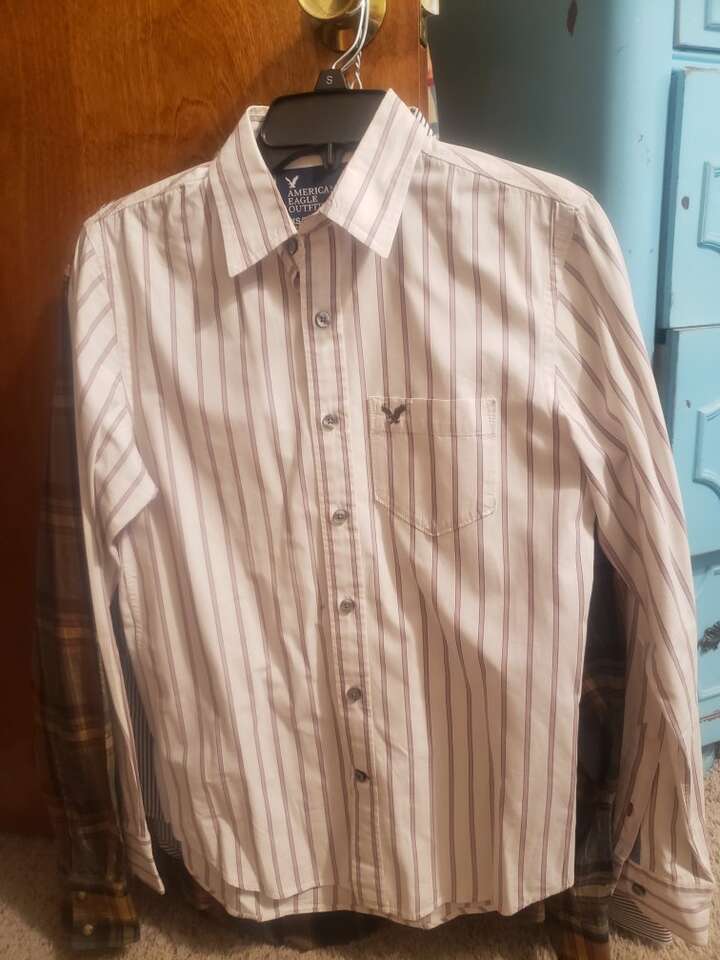 4 shirts: 2 western (Wrangler) 1 American Eagle with wear and 1 Zara striped shirt. Size small.