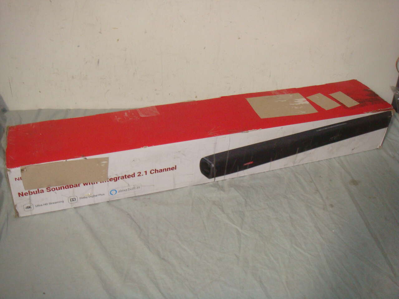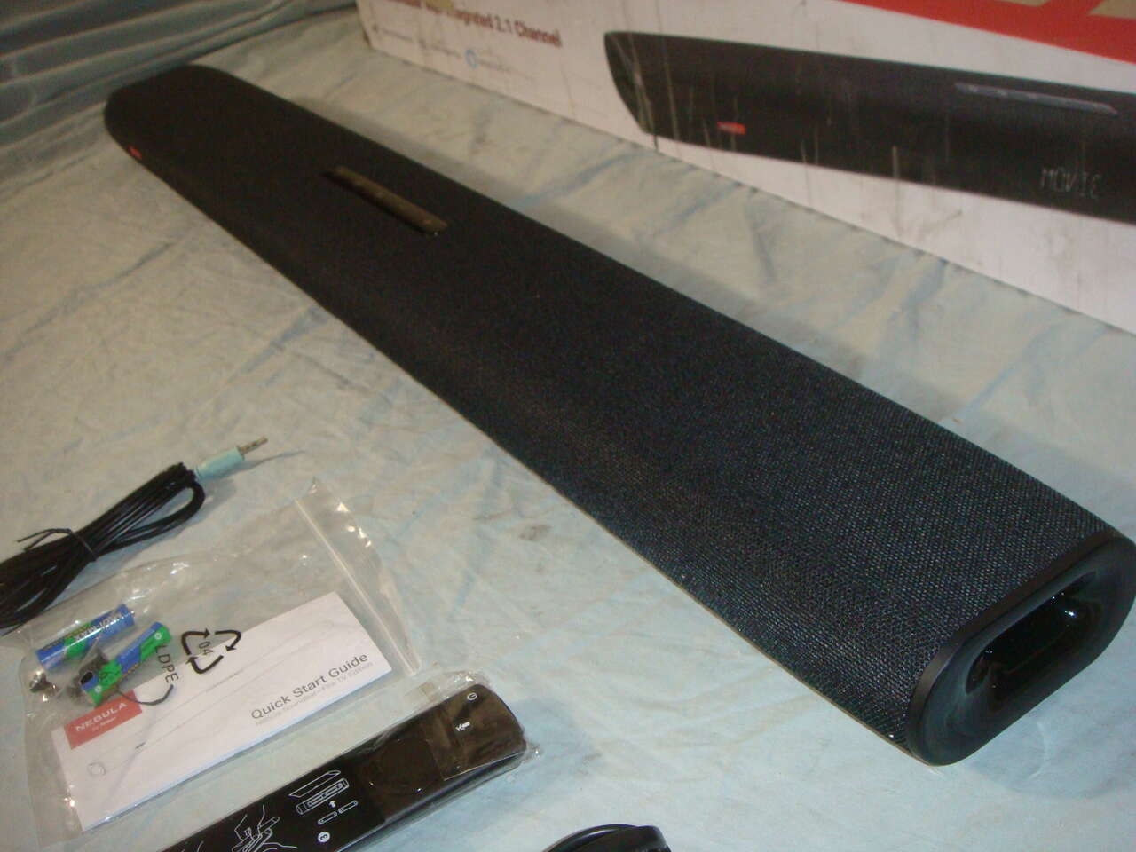 NEBULA 2.1 CHANNEL SOUNDBAR FIRE TV EDITION. This is a new, open box item that was only opened for the photos and to be tested prior to sale. It works perfectly and sounds great! The original box has spots where labels were cut off, but otherwise everything is in new, perfect condition.