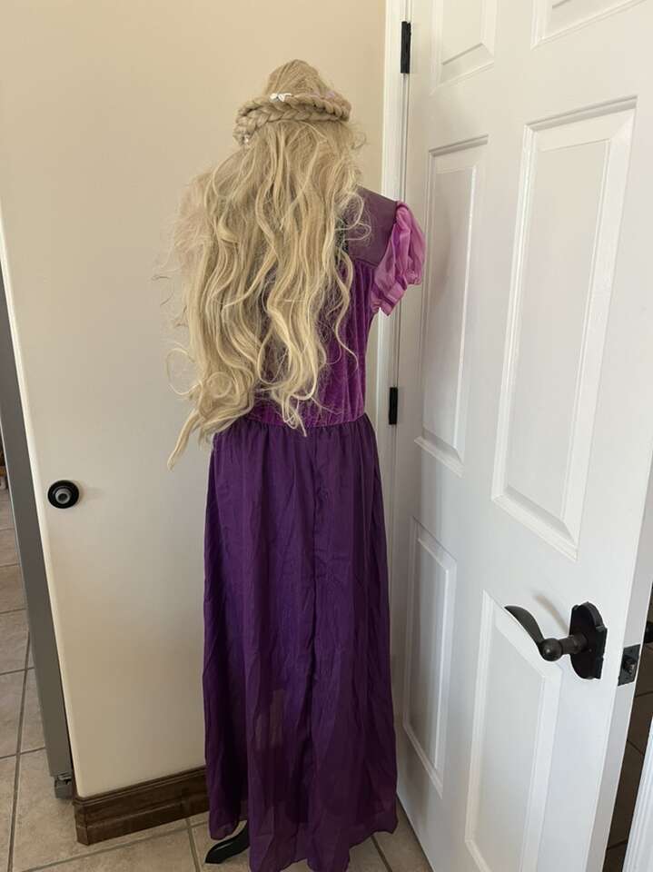 Adult Disney Princess Rapunzel costume with wig and necklace wig needs brushing