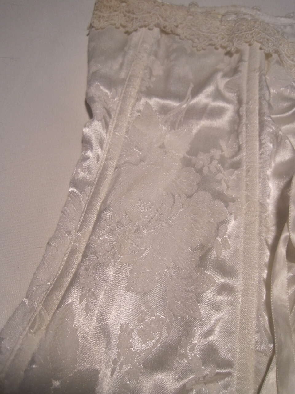 This vintage Shirley of Hollywood corset is a stunning piece perfect for any bride-to-be. The satin cream material is accented with a beautiful floral lace design, adding a touch of elegance to your wedding lingerie collection. The corset has a hook and eye closure and adjustable straps, making it a comfortable and flattering fit for a size 36. The corset skirt style is perfect for any wedding theme and is made of high-quality polyester material. This corset is sheer and comes with boned features, ensuring a comfortable and supportive fit. The vintage look of this corset adds a touch of nostalgia to your special day.