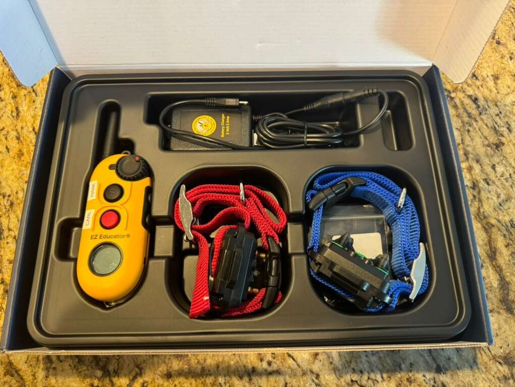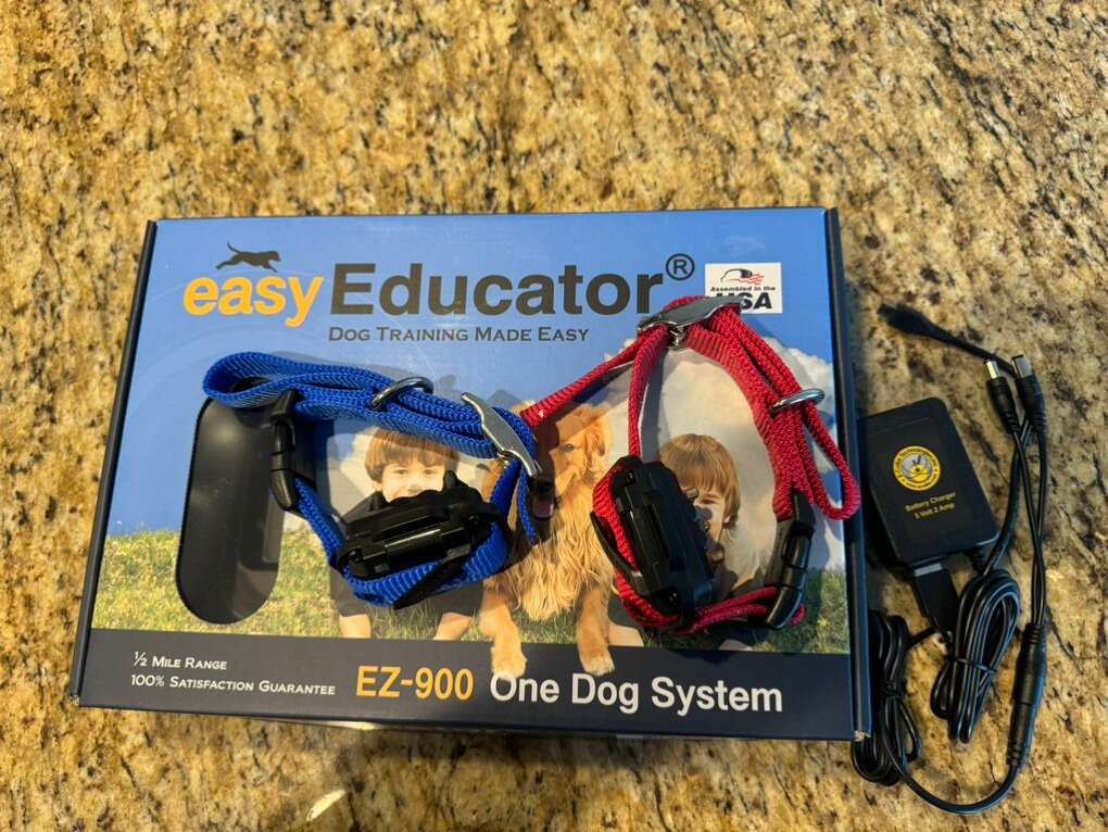 VenmoThis is the easy educator ez-900 including 2 collars, with a single remote to train two dogs at once. Both collars have been folded over so you can use these for big or small dogs. The charger allows you to charge the remote and both collars at once. They are water proof and 1/2 mile range.