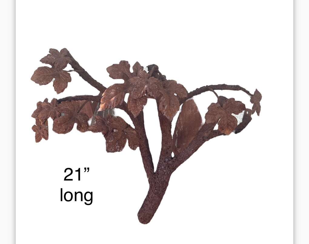 15” tall made by an artist that does steel sculpture. These will hold a board when shelves are mounted on a wall or fireplace they each have two mounting brackets welded on.