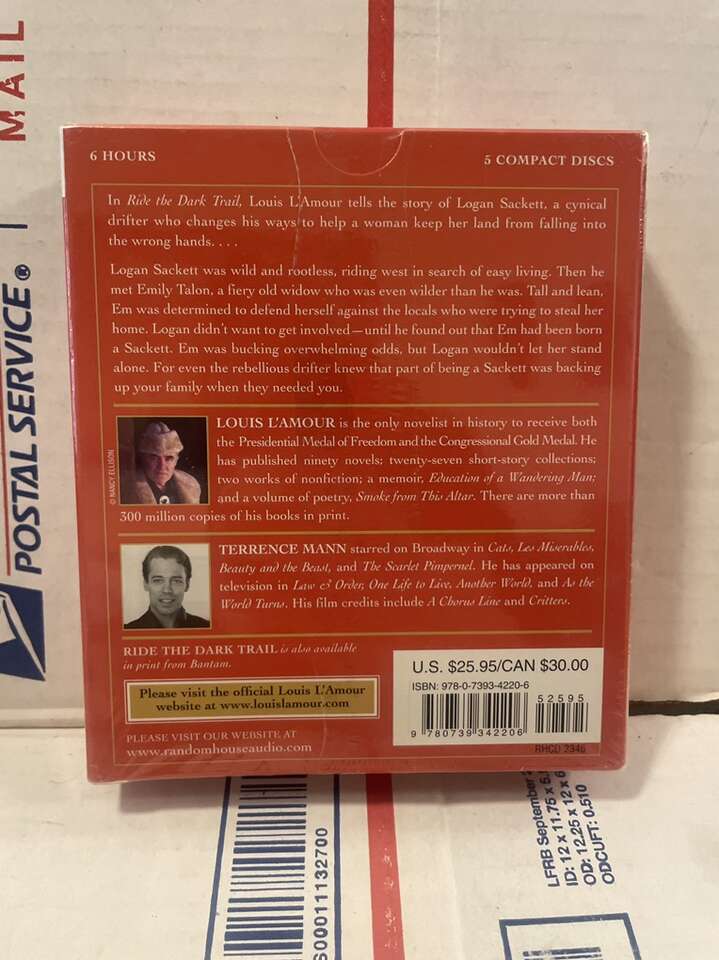 Louis L'Amour Audio Cassette, ride the dark trail Unabridged 4 cassettes shrink wrapped. Brand new sealed.