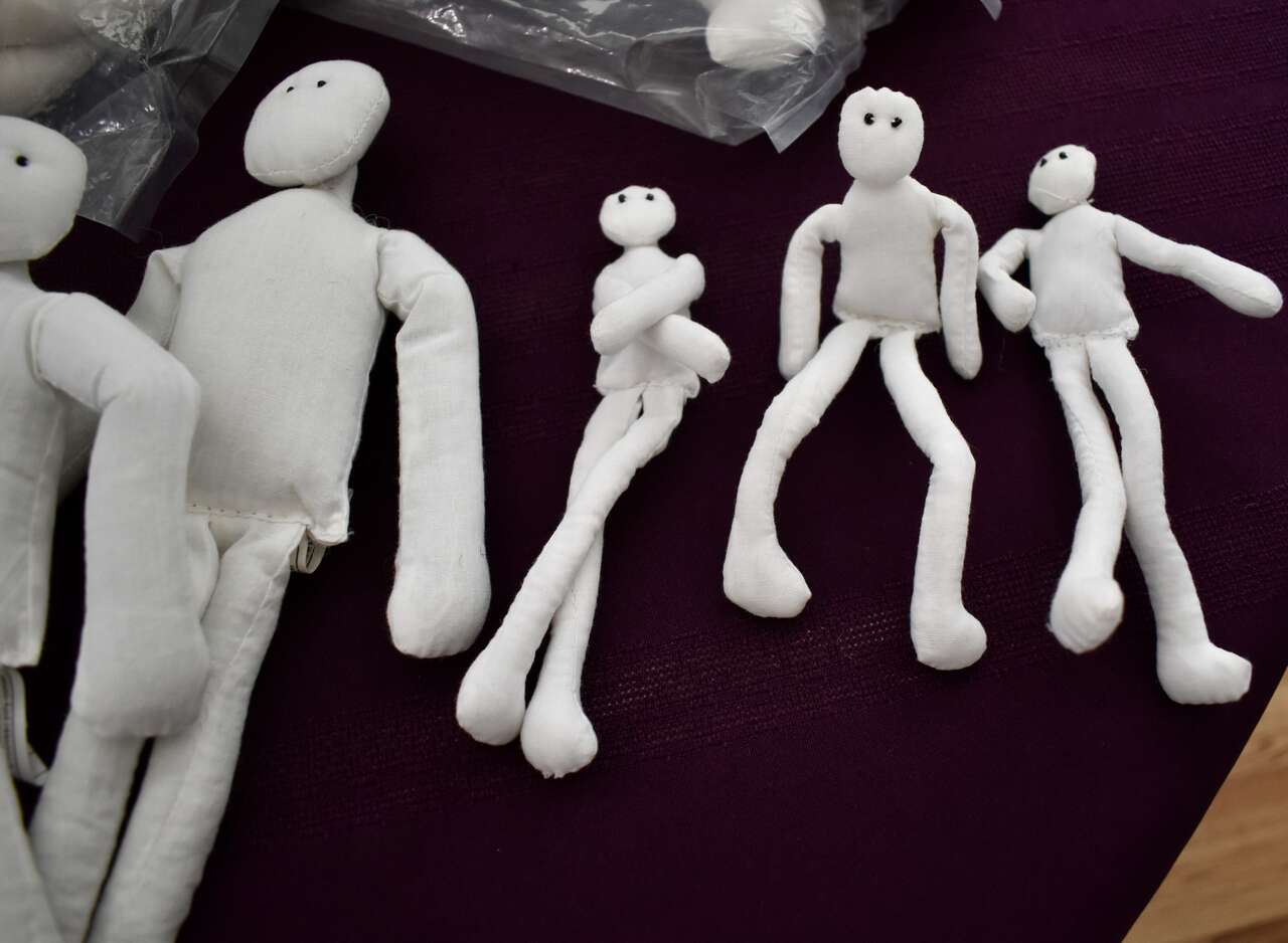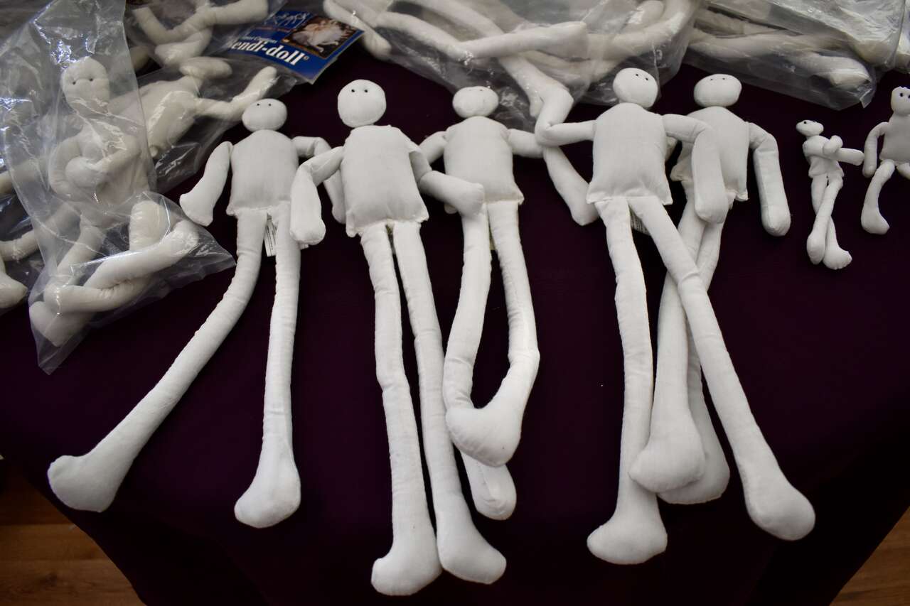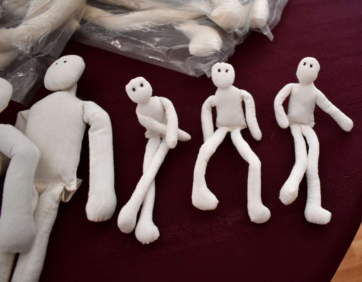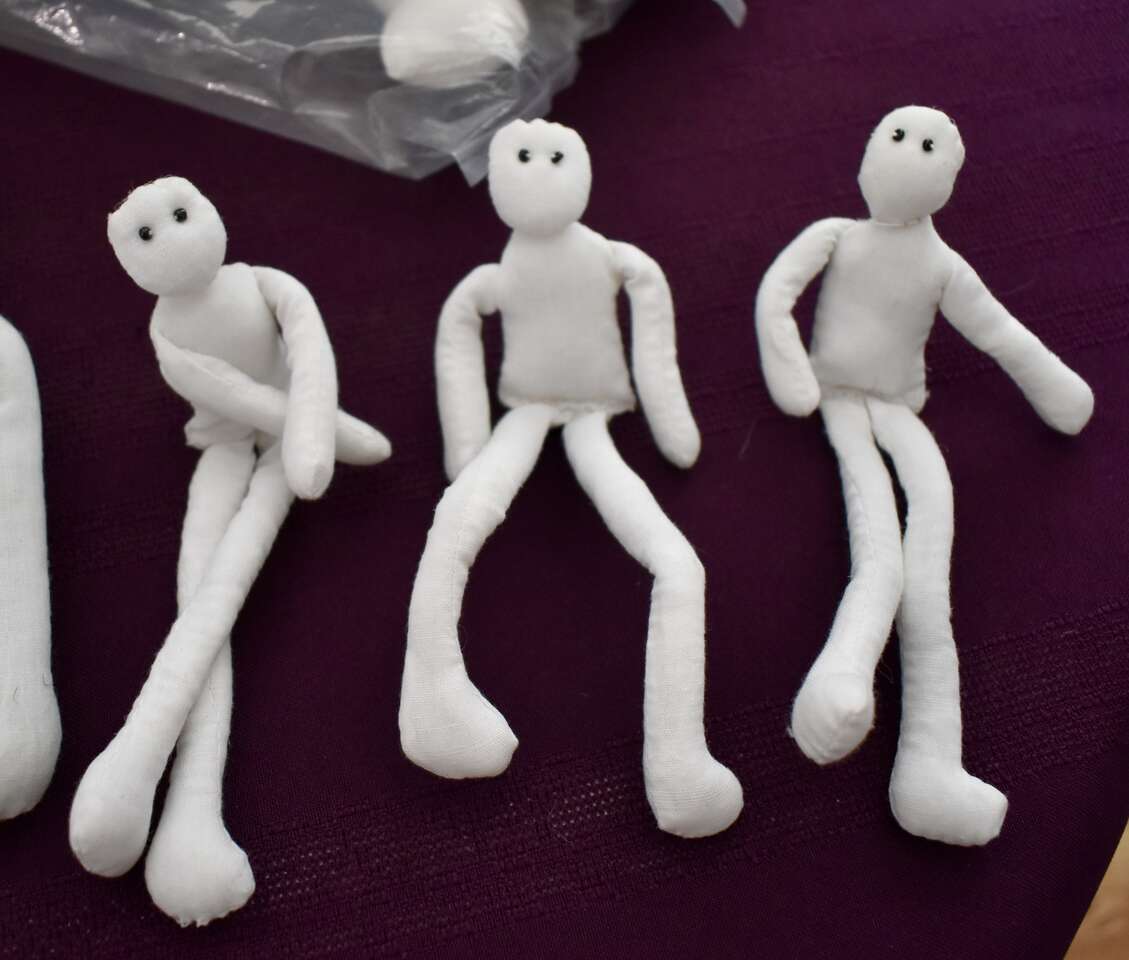 THEY MEASURE… The 3 smaller dolls each measure approx. 6 inches tall and the larger sized cloth dolls measure approx. 14 inches tall.