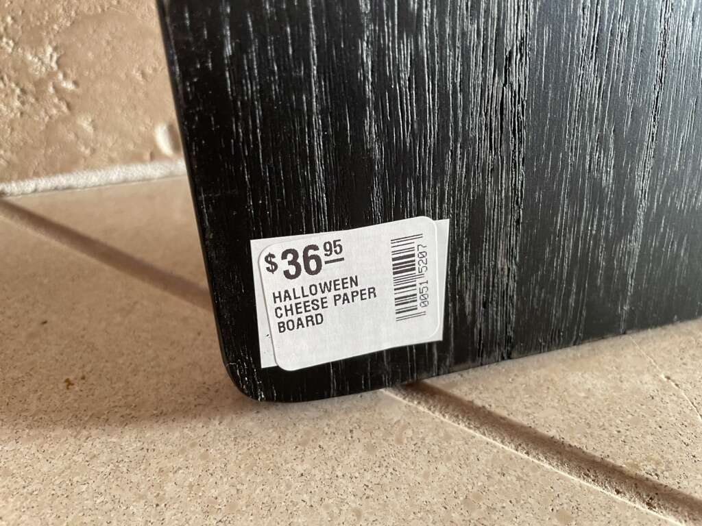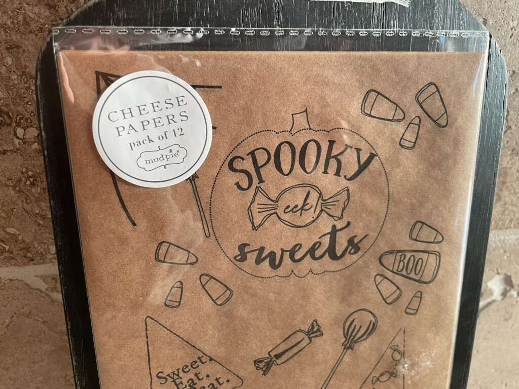 I have a new black wood board with a pack of 12 Halloween cheese papers by mud pie. The board is 18 inches by 7 inches. The price tag shows it was $36.95. See my other ads for jewelry, artwork, home decor and more.