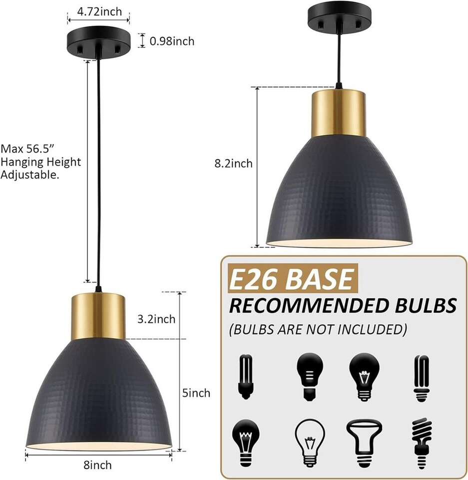 Industrial Pendent Light Retro style design pendent lighting is made of durable metal and paint finish no need to worry about get rusty and color fading. Industrial pendent light fixture emits aesthetic and bright glow to light up you room. Adjustable & DIY Design Vintage pendant lights with adjustable rope ( Max Length 47.25' ) Your can design the pendant light higher or lower to fit your ceiling height. Pendant lighting is compatible with different types of ceiling designs such as vaulted ceilings sloped ceilings and flat ceilings. Bulb Requirements Pendant light is compatible with any E26 based bulbs such as incandescent (Max 60W) LED (Max 25w) CFL and halogen bulbs (Bulbs Not Included). Wide Application Vintage pendant light is perfect for kitchen island dining room living room hallway bedroom bathroom porch stairway entryway foyer mini bar coffee shop etc. This light fixtures ceiling hanging is the best choice for your home lighting decoration.