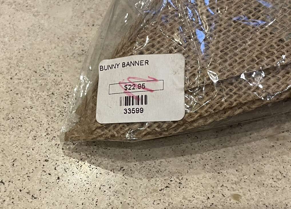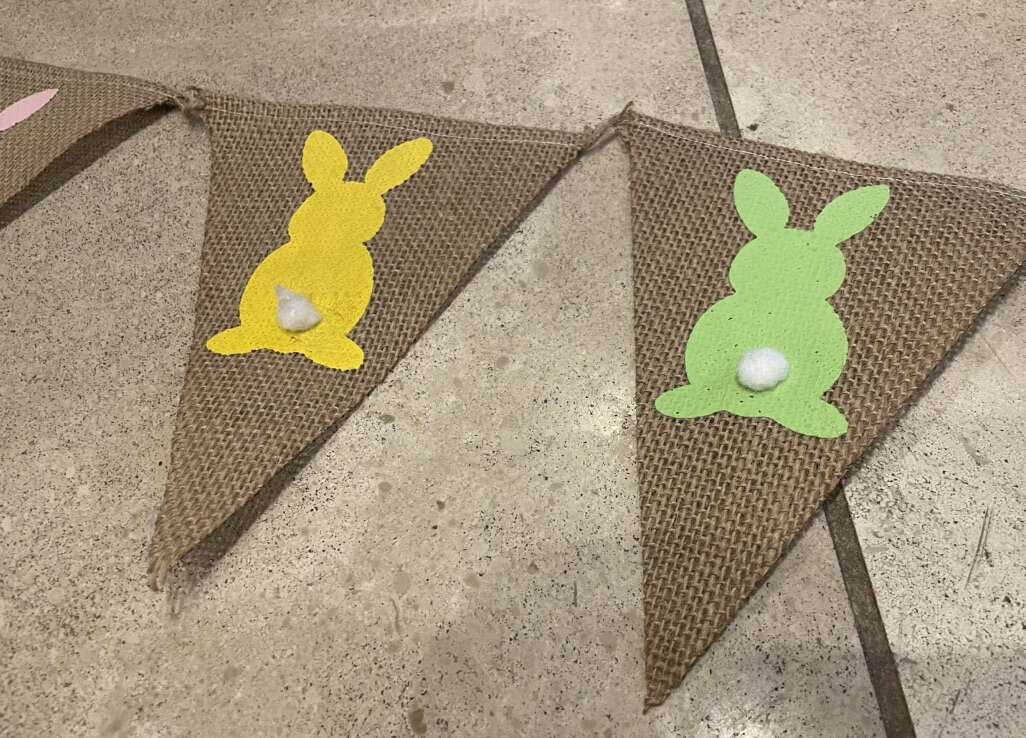 I have a new banner with burlap triangles and colorful bunny rabbits with pom pom tails. It was sold in a boutique at Easter but would be cute for a baby shower, birthday party or lots more. It is 54 inches long plus extra rope at the ends for hanging it. The triangles are 7 inches tall. It is in clear cellophane bags. The price tag on the bag shows it was $22.95. I’m asking $6. See my other ads for jewelry, artwork, home decor and more.