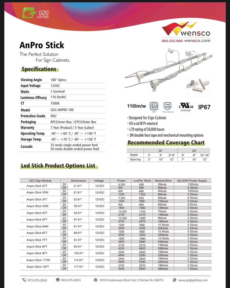 VenmoStick LED lighting designed for a sign cabinet. 6 pieces per case, have 2 cases. Each stick is 8 feet.