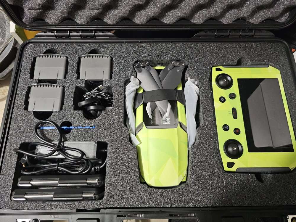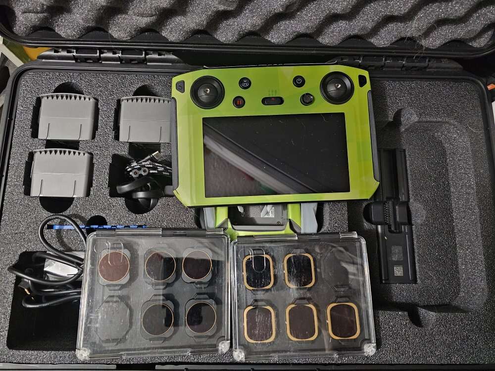 -DJI Mavic 2 Pro -Pelican hard case with fitted foam -DJI Smart Controller -3+ Batteries (I think I have 5, but will have to confirm) -3 sets of filters -2x Fly More kits (bags, chargers, propellers, etc) -4 Memory Cards -Travel safe battery holder -Unused propeller guards -Multiple chargers including a Multi-charger.