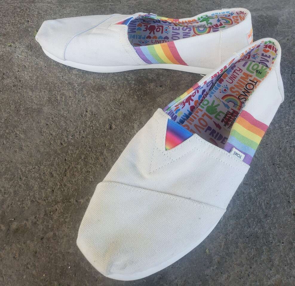 Toms canvas rainbow love wins shoes M9 slip ons Apparently these are pride shoes, oblivious me just got them for the pretty rainbows️ (801)472-2627
