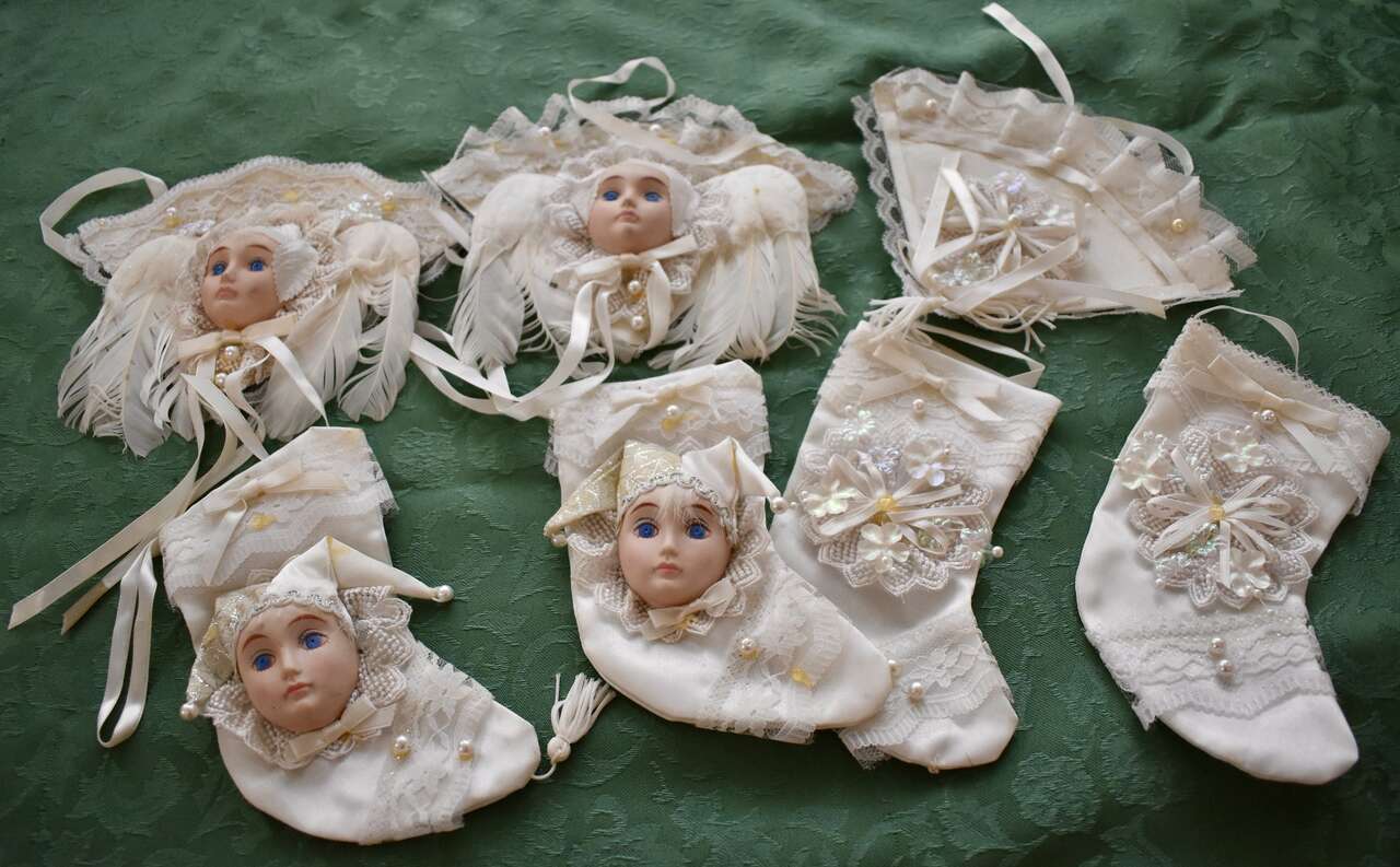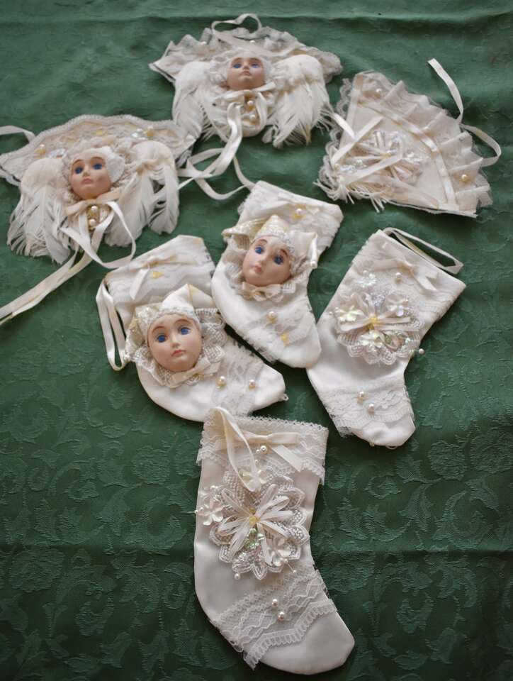 IT MEASURES… They each measure between approx. 5 1/2 to 6 1/2 inches tall Plus their ribbon hangers