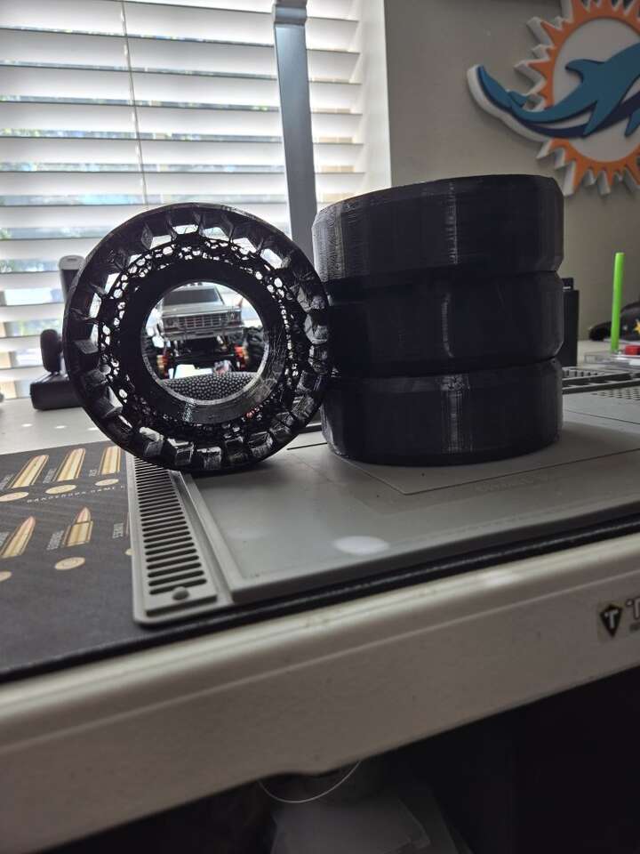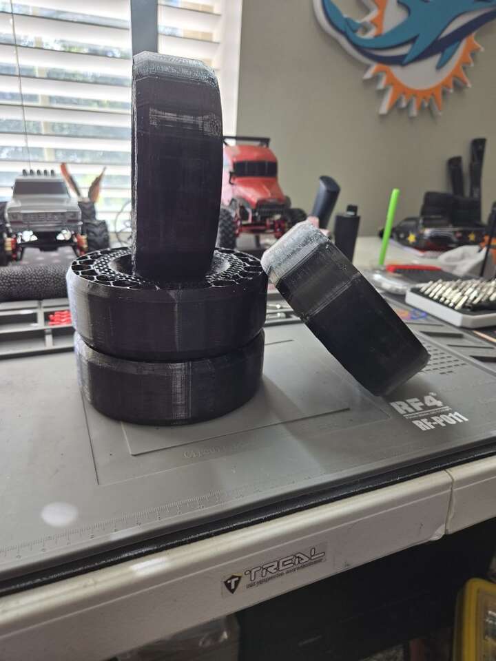 These are 2.2 x 5.7 3D printed RC tire inserts. 1.750 wibe. Tried them out was not soft enough for me. Was running in a 150mm jconcepts rupture tire They do squish and side wall is very stiff. I'd say there not super soft but not hard somewhere in between