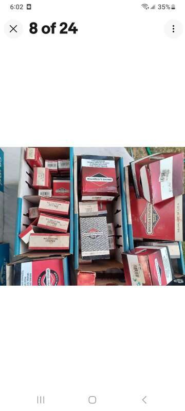 92 lbs of new old stock small engine repair parts. Briggs and Stratton, Husqvarna, Standard, and many, many other parts. WAY TOO MANY TO LIST! Please look at the pictures.