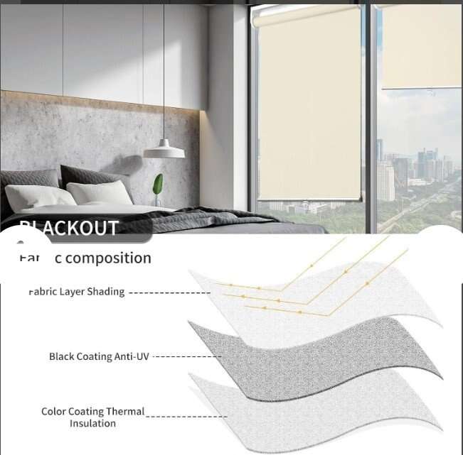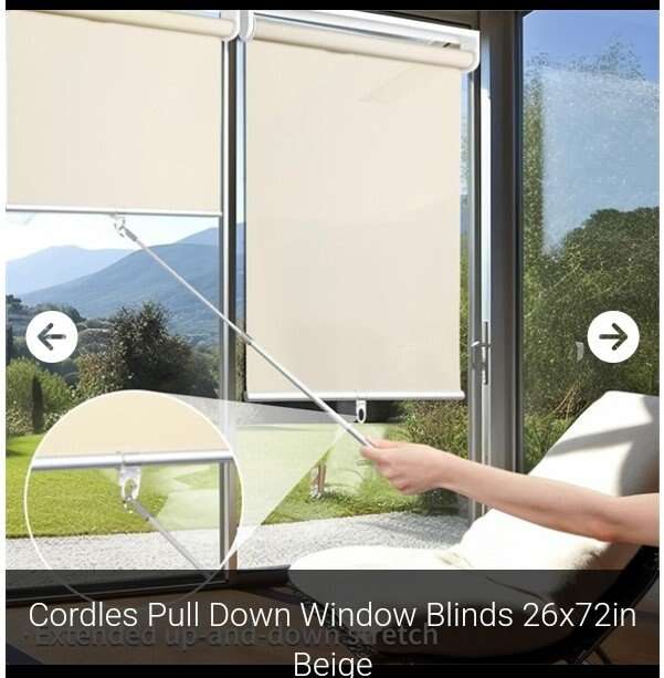 Cordless Roller Shades Pull Down Window Blinds Room Darkening Rolled Up Shades with Push-Pull Rod for Home and Office Bedroom Bathroom Living Room 26x72in, Beige