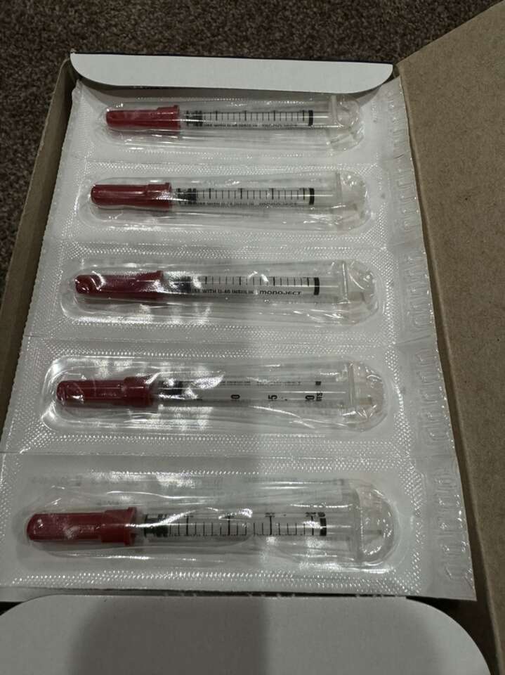 Covidien monoject u-40 1/2 insulin syringe. Our chihuahua had diabetes and passed away. Selling 3 box’s with approximately 300 syringes. Each box $15 dollars or all 3 for $40. OBO