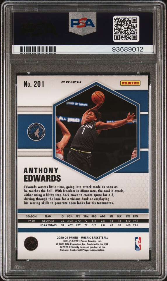 2020 Mosaic Anthony Edwards Reactive Blue #201 PSA 10 Timberwolves