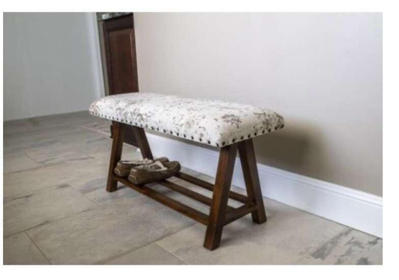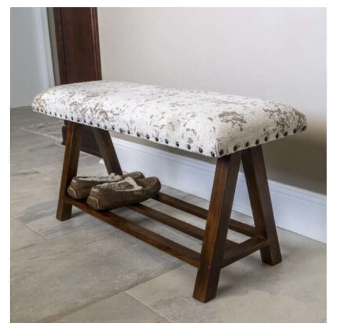 NEW in box Decor Therapy Casual Walnut, Cream Accent Bench with Storage 34-in x 12-in x 18-in Compare online at $149
