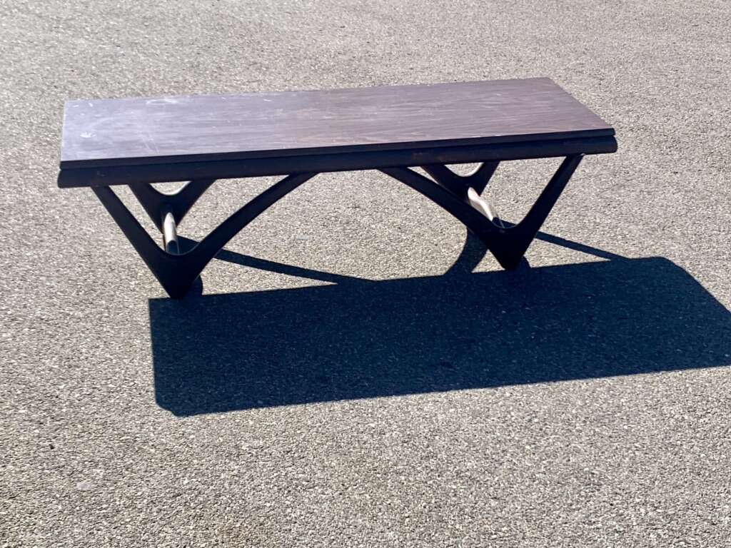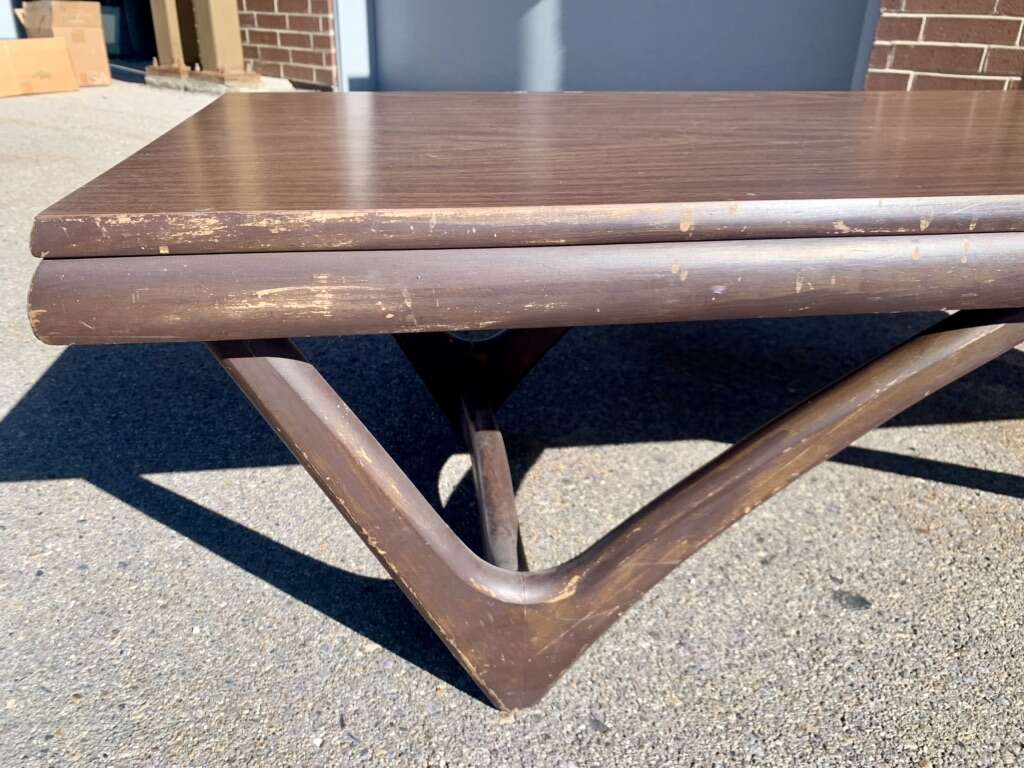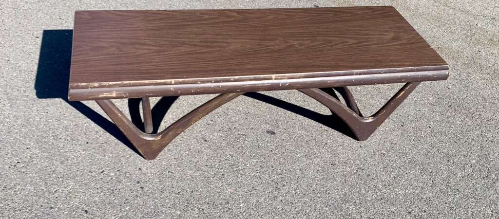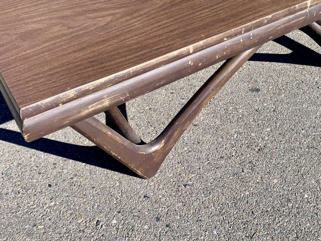 Adrian Pearsall designed “boomerang atomic sculpted legs table. Pennsylvania Company Crafter's Associates Walnut table base/legs with a Formica walnut tabletop.