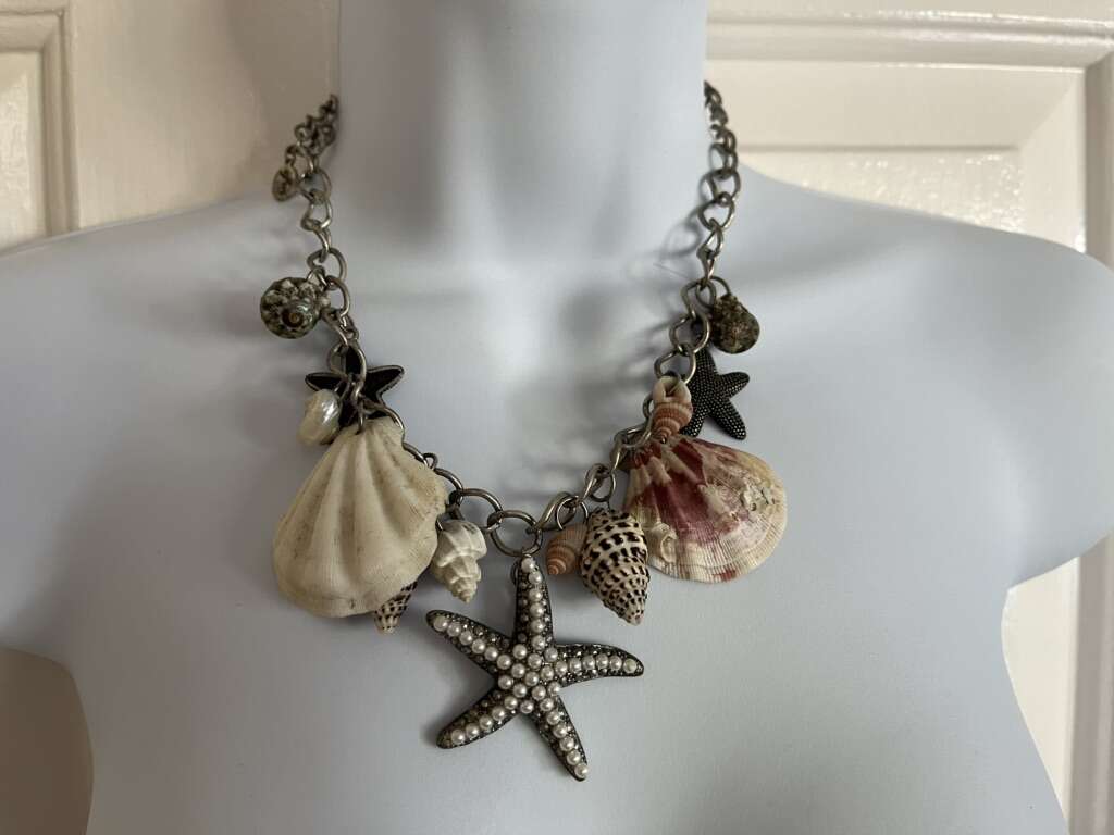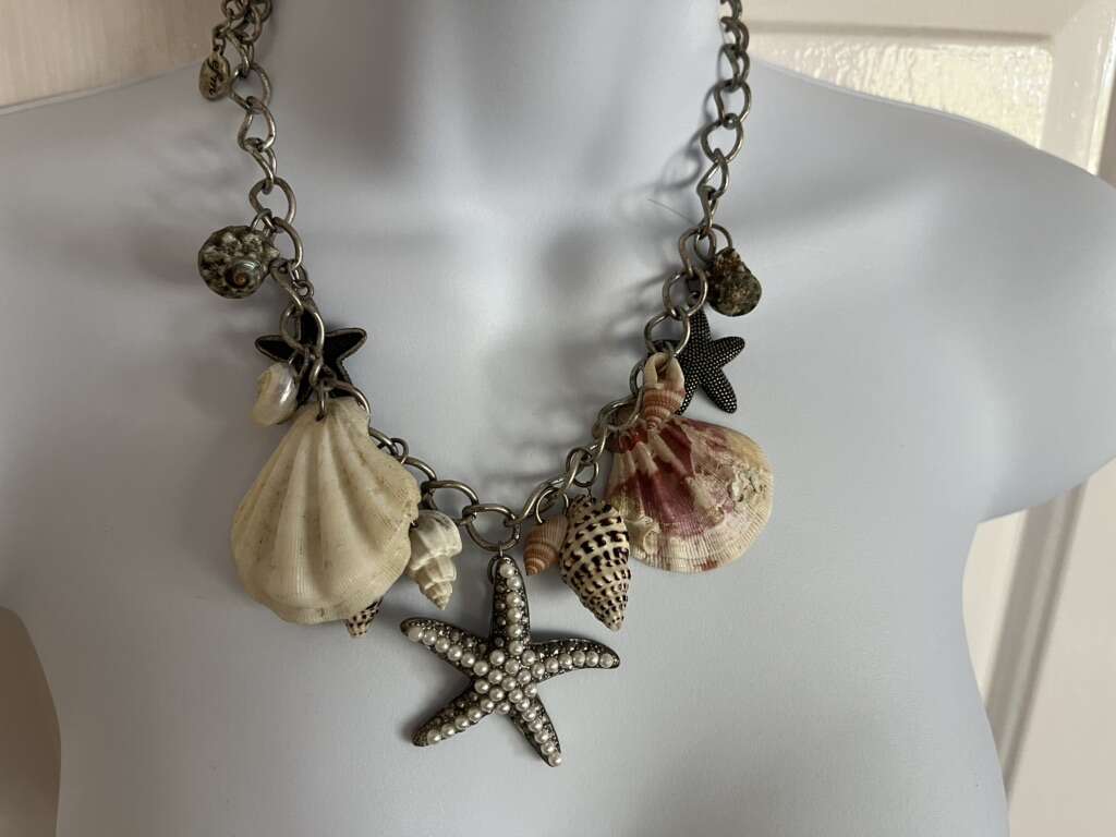 Necklace adorable seashell adjustable length starfish has fake pearls!