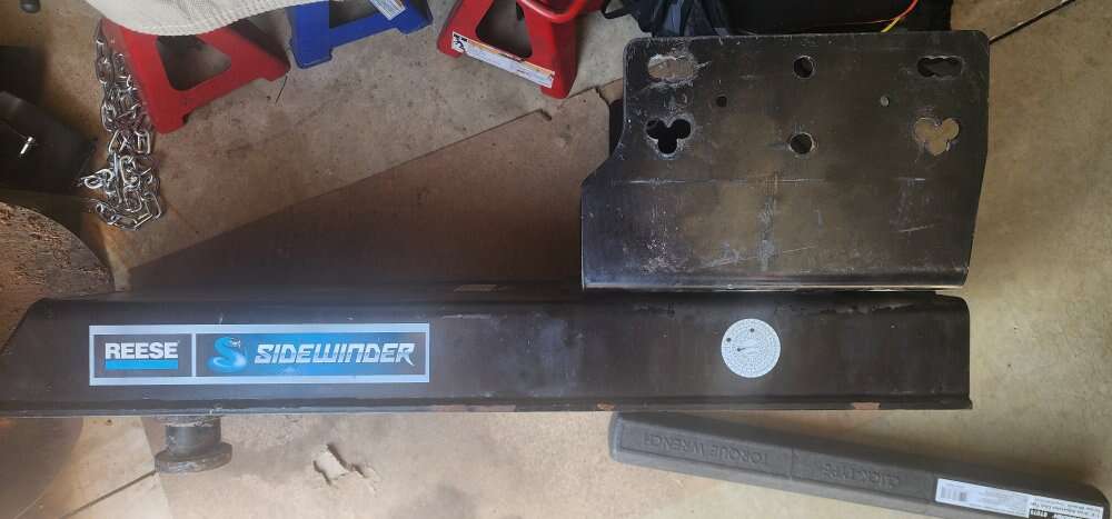 Reese Sidewinder, just what you need if you have a shortbed and pulling a 5th wheel. New is close to $1,400. This moves your rotation point away from your cab, allowing for 90 degree turns without hitting. Model and info in first photo.