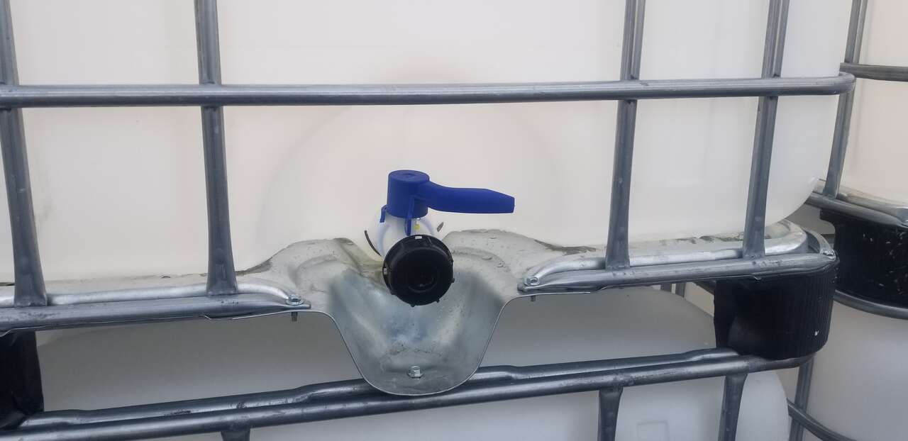 They have a 6" lid plus a 2" bung cap on top for filling the tank and a 2" valve on the bottom for drainage that can be reduced down in size to attach a garden hose. All totes have some residual food product in them that can easily be rinsed out.