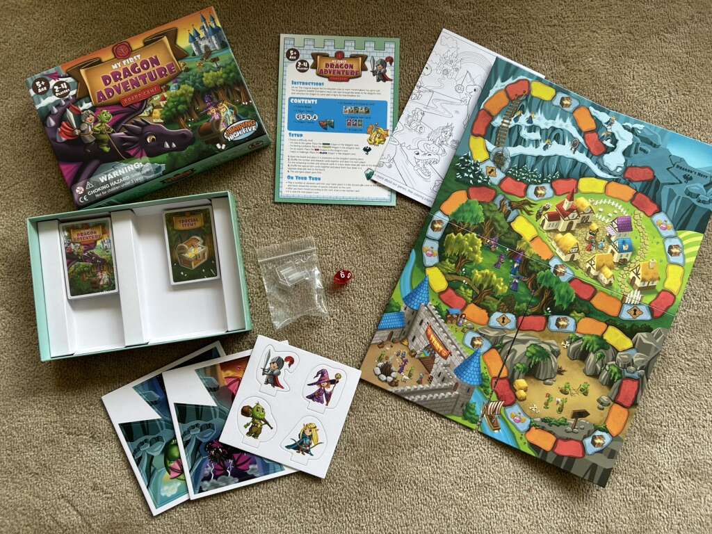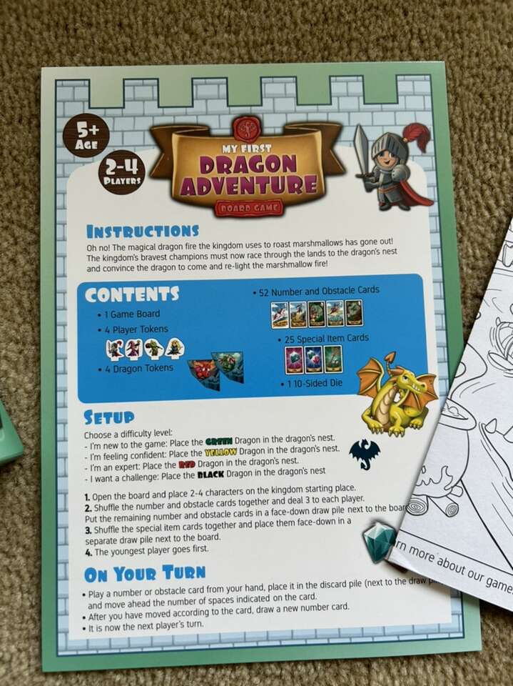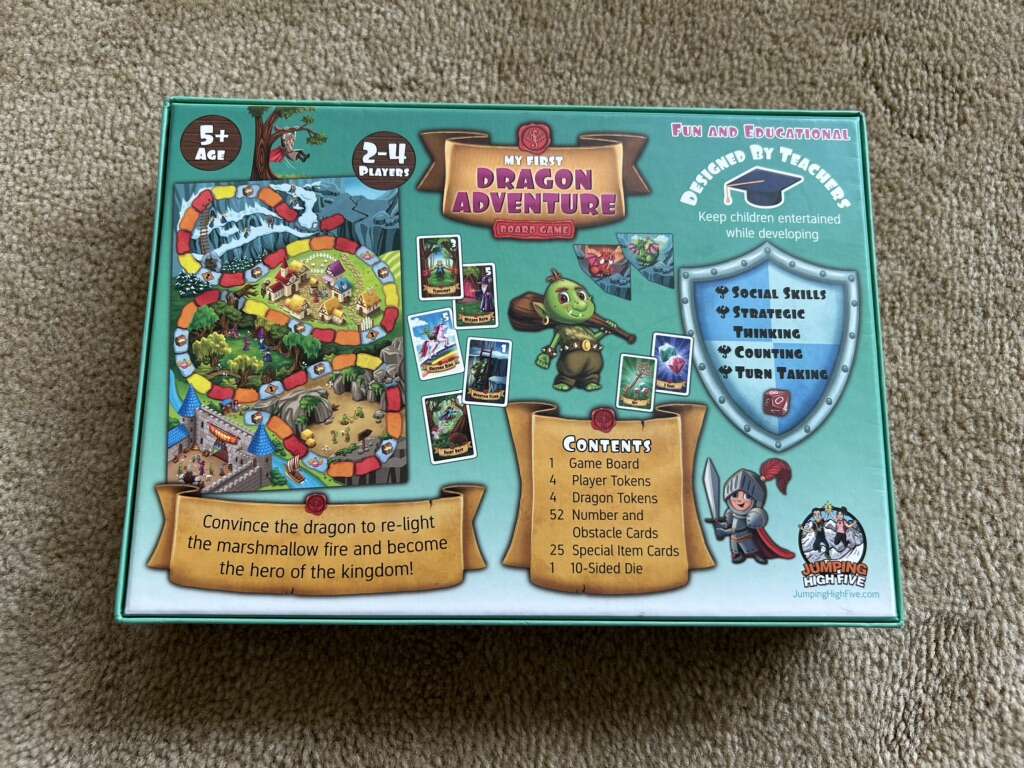 NEW (open box, sealed & unpunched components) My First Dragon Adventure Board Game. Ages 5+, 2-4 players. By Jumping High Five Games, 2021. High-quality game, new, unplayed condition. Text only. Cash or Venmo.