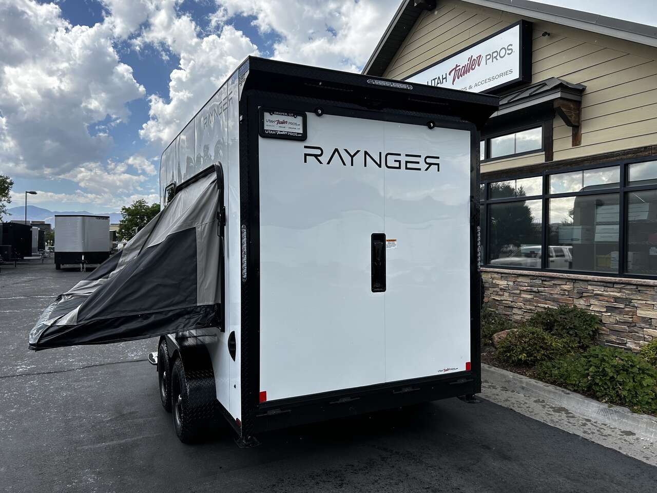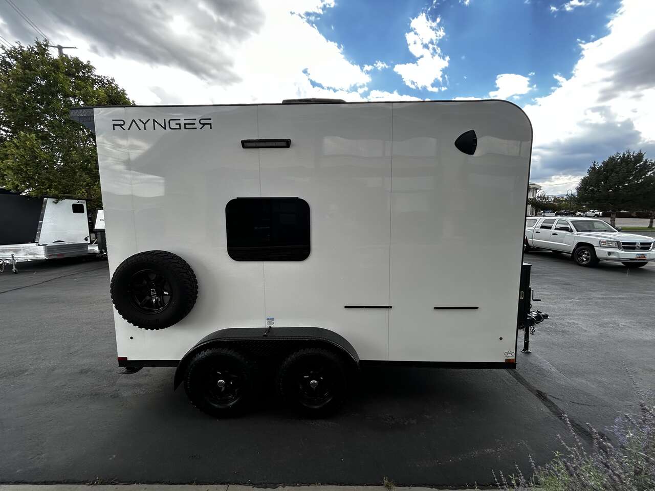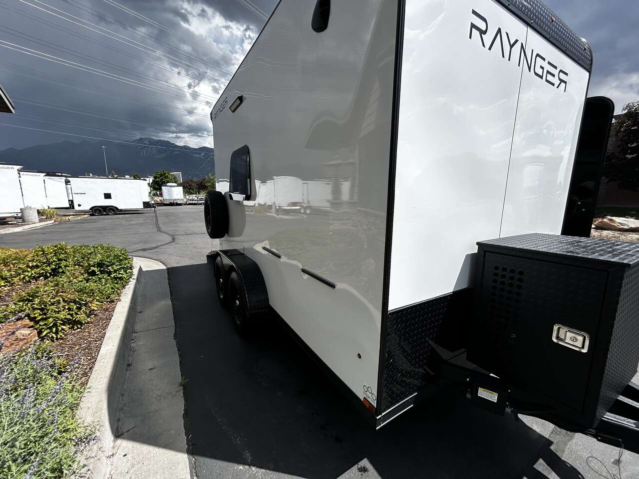 LIMITED TIME $241 A MONTH WITH ZERO DOWN WITH OUR SPECIAL LOCAL CREDIT UNION PARTNER!!! NO PRE-PAYMENT PENALTIES!!! NEW FEATURE, FULL BATH/HALF KITCHEN!! SELF CONTAINED TOILET, 36x36 SHOWER, FRESH WATER TANK, WATER HEATER, WATER PUMP, SINK AND MORE!!! NEW 2025 MODEL!!! RAYNGER PREMIUM OFF ROAD TOY HAULER CAMPER!!! 19 INCH GROUND CLEARANCE!!! OFF ROAD TIRES!!! FULLY INSULATED!!! HEATING AND A/C!!! WET SOUND STEREO!!! FOLD OUT/POP OUT TENT WITH MATTRESS!!! 84 Inch Rear Entry Height/87 INCH INTERIOR HEIGHT!!! 77 Inch Rear Entry Width!!! Aluminum Ventilated Locking Generator Box!!! UPGRADED TORSION AXLES!!! 11.1 Foot Long Garage Space!!! And Much MUCH MORE!!! Check out our Specs!!! Also available in 18 foot models. 18 Foot Models can have 3 Fold Out Beds/Pop Out Tents. 16 Foot and 18 Foot Models will fit ANY stock 4 Seater Side by Side • 6” I Beam Frame• Flat Top Design• Flat Front Design• Wall Posts 16” on Center• Cross Members 16” on Center• Roof Bows 16” on Center• Rust Inhibiting Z-Tech Protection on Chassis• Ameraguard on Tongue• Ameraguard on Rear Bumper• Ameraguard Around All Door Openings and Stepwell• Ameraguard Around Edges of Ramp Door• 3500 LB Spring Axles• 2-5/16” Coupler• One-Piece Aluminum Roof• ST235/75R15 Aluminum Wheels with Chrome Center Caps• 2000# Ramp Door with Eberhard Latch• 30” Tempered Glass RV Door with Screen Door• .030 Exterior Metal with Screwless Sides• 24” Black Stoneguard• 3” Black Bottom Trim• Sand Pad• Black Door Hold• 2.7mm Charcoal Textured Vinyl Ceiling • 9mm Charcoal Textured Vinyl Walls• 3/4” Engineered Wood Floor with Rubber Coin Overlay• (6) 1200 LB Floor D rings Installed with Backer Plates• LED Clearance Lights and Tail Lights• LED Back-up Lights• No Show Wheel Box• Spoiler with Toggle Switch• RV Step• 7’ Interior• (2) 17” Chrome Base Lights with Switch• (1) Black 17” Spot Light with Switch• (1) 30 Amp Panel with Marine Plug• A/C Unit with Heat Strip• (3) Interior Recepts• (1) Exterior Recept• 12V Battery and Charge Line• Prep for Backup Camera• Wet Sounds System• (3) Blue Interior Cabinet Lights• (1) 6’ Section of Flex Lights• Black ATP Rear Header and Hoop• Black ATP Fenders• Insulated Walls & Ceiling• Base Cabinets• Overhead Cabinets with Netting Over Compartments• Pop Out Tent• Black ATP Storage/Generator Box Mounted On Tongue