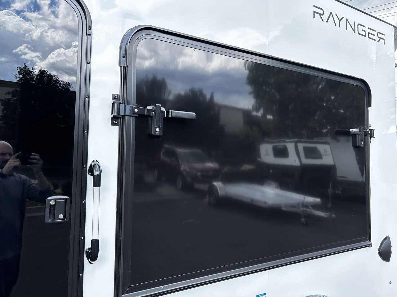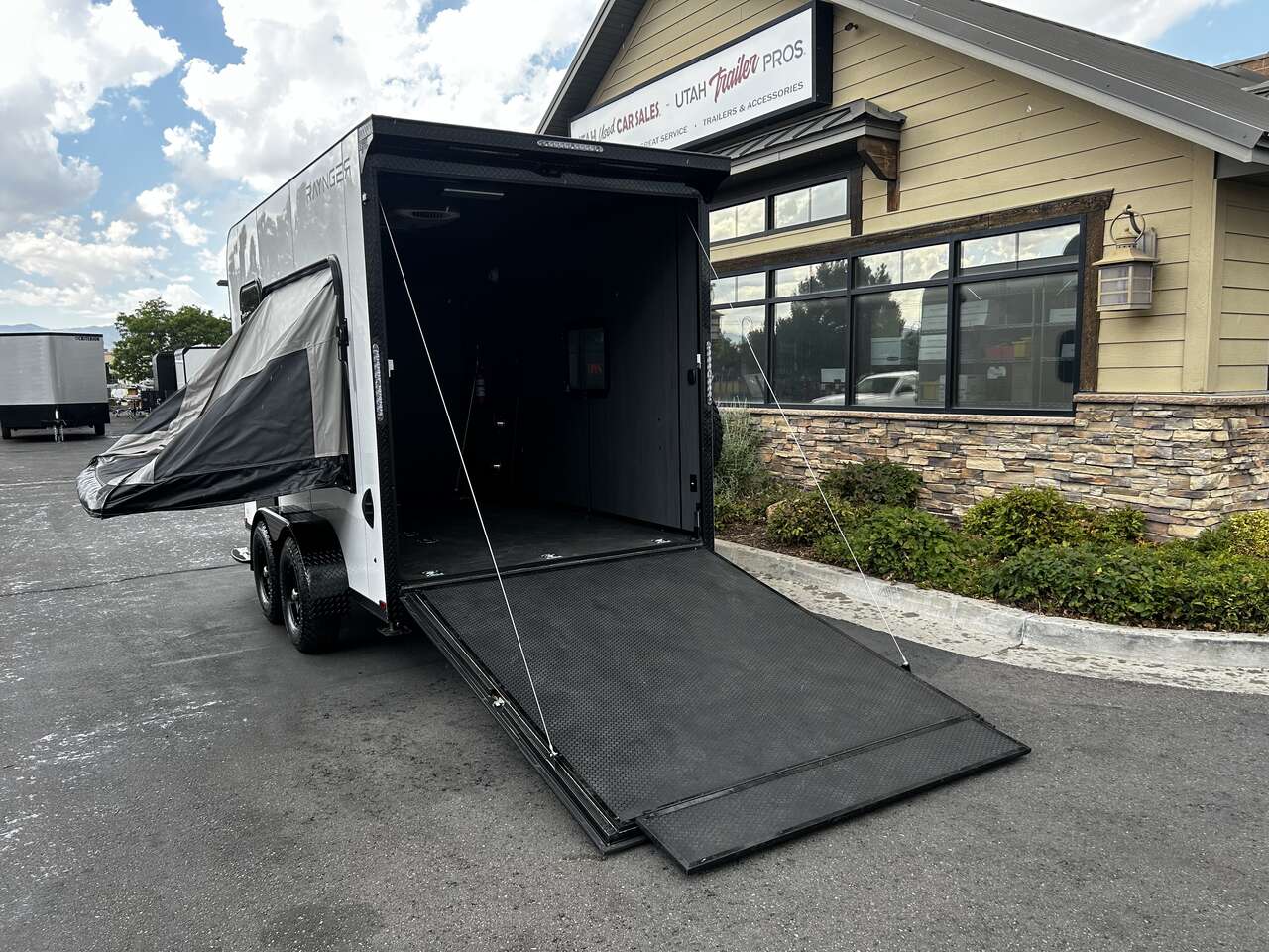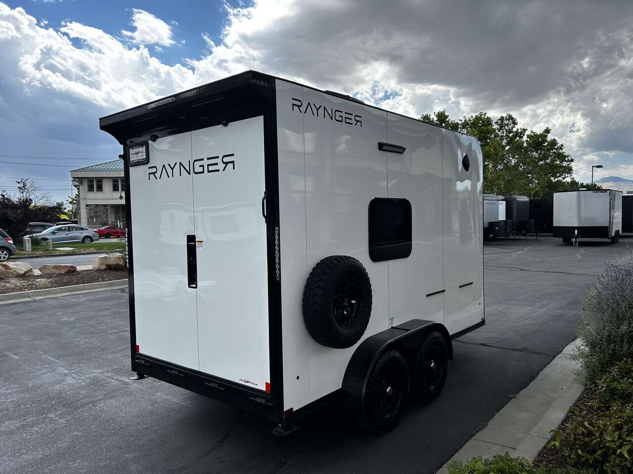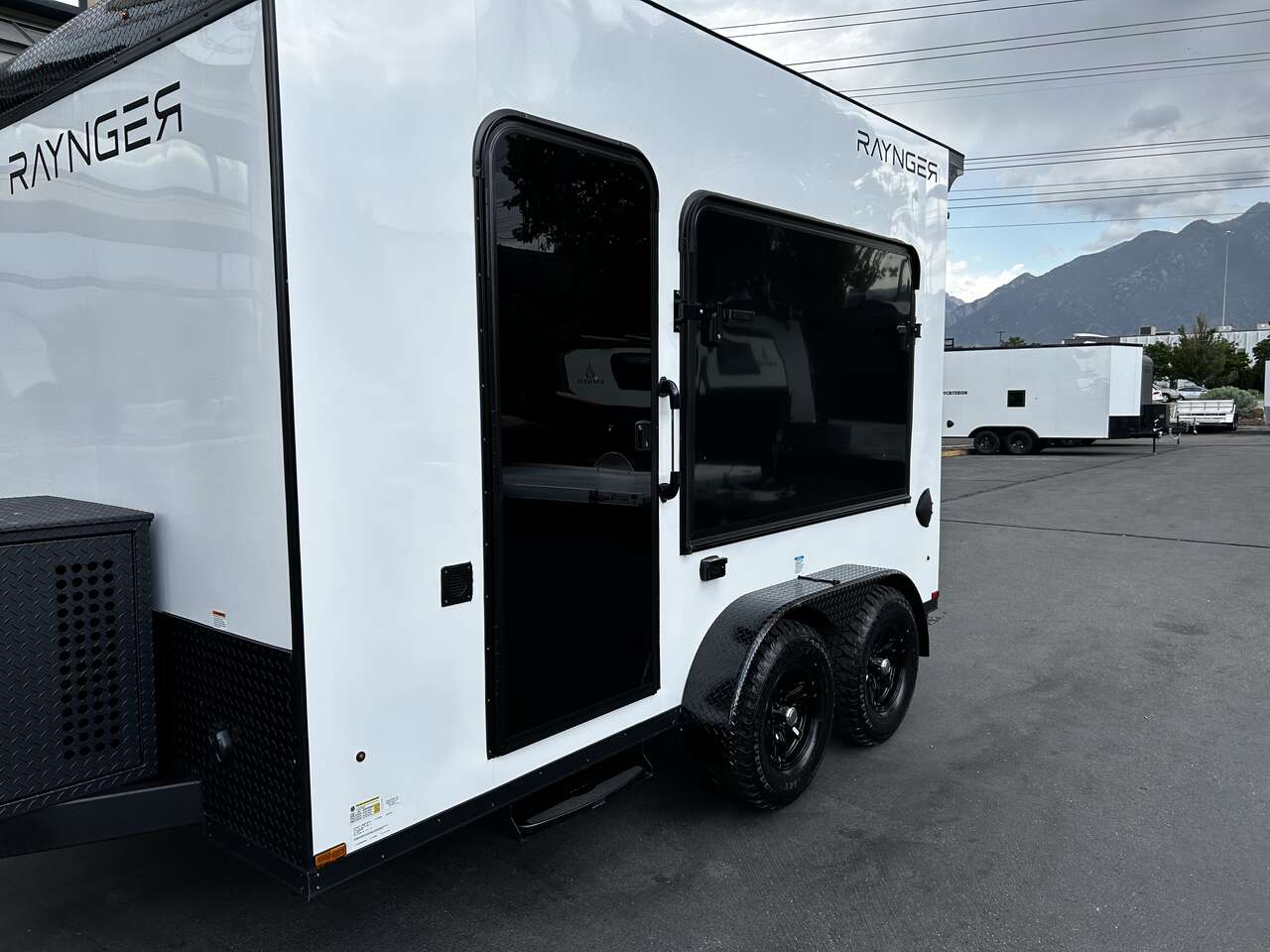 LIMITED TIME $241 A MONTH WITH ZERO DOWN WITH OUR SPECIAL LOCAL CREDIT UNION PARTNER!!! NO PRE-PAYMENT PENALTIES!!! NEW FEATURE, FULL BATH/HALF KITCHEN!! SELF CONTAINED TOILET, 36x36 SHOWER, FRESH WATER TANK, WATER HEATER, WATER PUMP, SINK AND MORE!!! NEW 2025 MODEL!!! RAYNGER PREMIUM OFF ROAD TOY HAULER CAMPER!!! 19 INCH GROUND CLEARANCE!!! OFF ROAD TIRES!!! FULLY INSULATED!!! HEATING AND A/C!!! WET SOUND STEREO!!! FOLD OUT/POP OUT TENT WITH MATTRESS!!! 84 Inch Rear Entry Height/87 INCH INTERIOR HEIGHT!!! 77 Inch Rear Entry Width!!! Aluminum Ventilated Locking Generator Box!!! UPGRADED TORSION AXLES!!! 11.1 Foot Long Garage Space!!! And Much MUCH MORE!!! Check out our Specs!!! Also available in 18 foot models. 18 Foot Models can have 3 Fold Out Beds/Pop Out Tents. 16 Foot and 18 Foot Models will fit ANY stock 4 Seater Side by Side • 6” I Beam Frame• Flat Top Design• Flat Front Design• Wall Posts 16” on Center• Cross Members 16” on Center• Roof Bows 16” on Center• Rust Inhibiting Z-Tech Protection on Chassis• Ameraguard on Tongue• Ameraguard on Rear Bumper• Ameraguard Around All Door Openings and Stepwell• Ameraguard Around Edges of Ramp Door• 3500 LB Spring Axles• 2-5/16” Coupler• One-Piece Aluminum Roof• ST235/75R15 Aluminum Wheels with Chrome Center Caps• 2000# Ramp Door with Eberhard Latch• 30” Tempered Glass RV Door with Screen Door• .030 Exterior Metal with Screwless Sides• 24” Black Stoneguard• 3” Black Bottom Trim• Sand Pad• Black Door Hold• 2.7mm Charcoal Textured Vinyl Ceiling • 9mm Charcoal Textured Vinyl Walls• 3/4” Engineered Wood Floor with Rubber Coin Overlay• (6) 1200 LB Floor D rings Installed with Backer Plates• LED Clearance Lights and Tail Lights• LED Back-up Lights• No Show Wheel Box• Spoiler with Toggle Switch• RV Step• 7’ Interior• (2) 17” Chrome Base Lights with Switch• (1) Black 17” Spot Light with Switch• (1) 30 Amp Panel with Marine Plug• A/C Unit with Heat Strip• (3) Interior Recepts• (1) Exterior Recept• 12V Battery and Charge Line• Prep for Backup Camera• Wet Sounds System• (3) Blue Interior Cabinet Lights• (1) 6’ Section of Flex Lights• Black ATP Rear Header and Hoop• Black ATP Fenders• Insulated Walls & Ceiling• Base Cabinets• Overhead Cabinets with Netting Over Compartments• Pop Out Tent• Black ATP Storage/Generator Box Mounted On Tongue