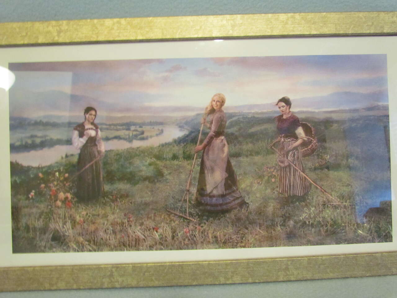 This lovely print was painted by Kelly Pugh of the "Three Sisters ~ Sad, Mad, & Glad" in Elder Dieter F. Uchtdorf's talk. It will be a beautiful on any wall it hangs on and a wonderful reminder of the message of Elder Uchtdorf's talk. The print measures 10" high x 20" wide and the frame measures 14" high x 26" wide.