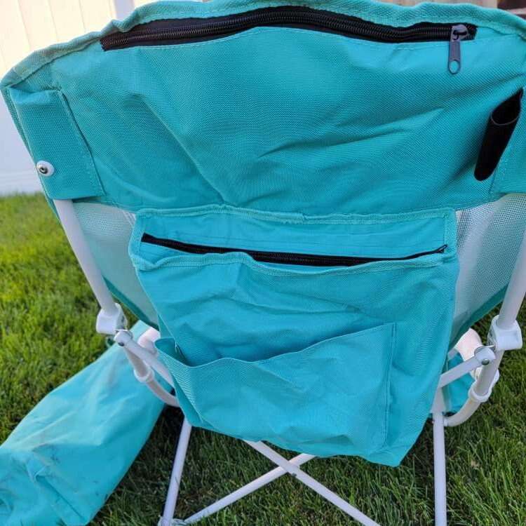 This Nice C brand beach chair with umbrella has an attached cooler, cup holder, cell phone pocket, and pocket for other items. It is new with packaging still on the arms of the chair, and the umbrella is in its original packaging. The bag has some dirt on it, but the rest of it is in great shape! It's a $60 set that I'm selling for $25.