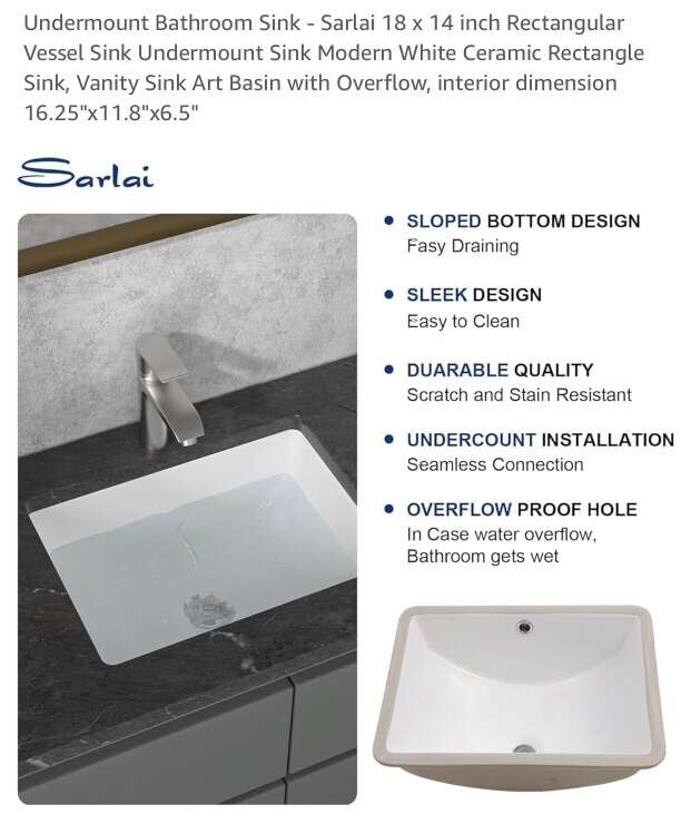 Rectangle Undermount Porcelain Sink