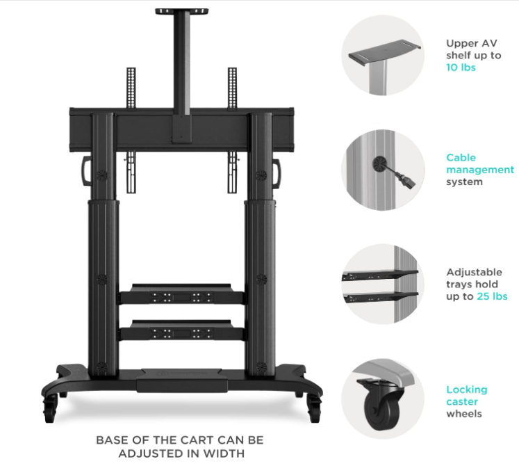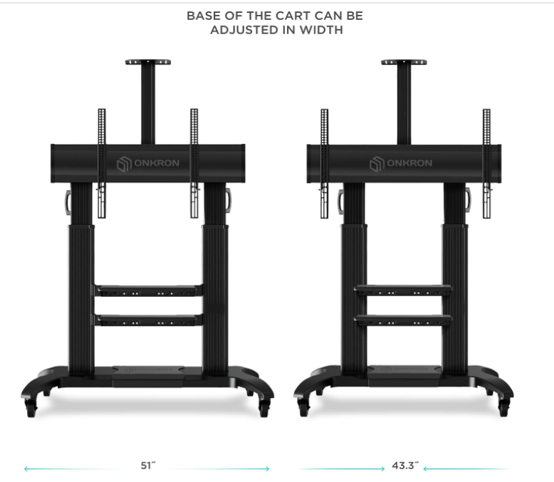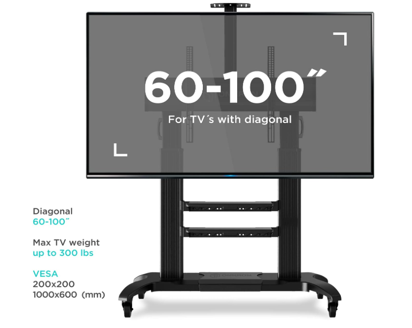 New ONKRON Mobile TV Stand for 60-100 Inch TVs up to 301 lbs, Large & Heavy Duty TV Stand Height Adjustable max VESA 1000x600 - Mobile TV Cart Rolling TV Stand Tall/Portable TV Stand on Wheels Black