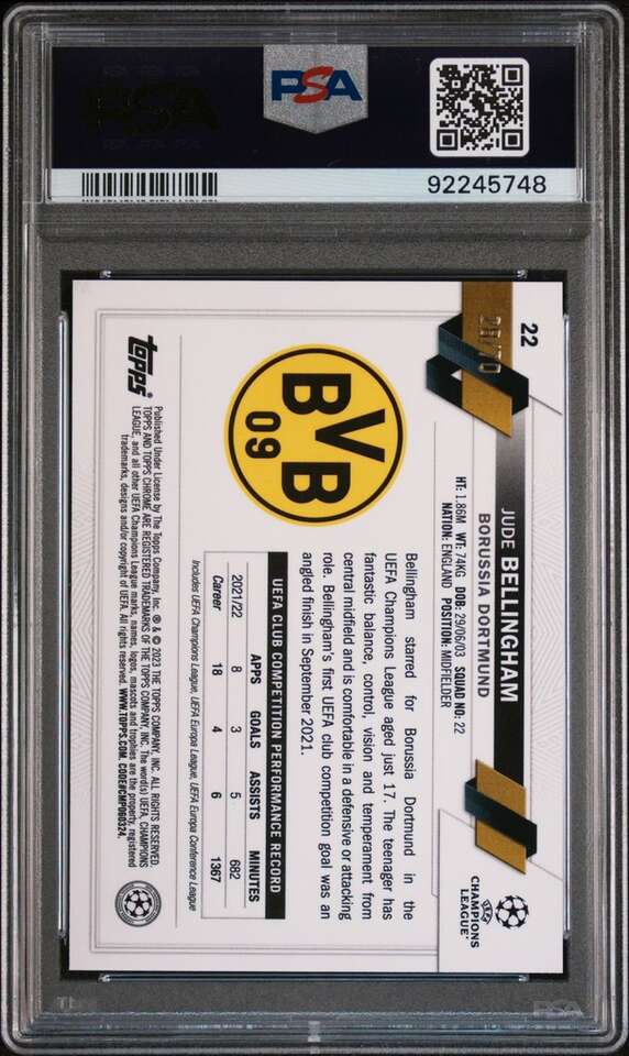 2022 Topps Chrome Sapphire UCC Jude Bellingham Green #22 PSA 9